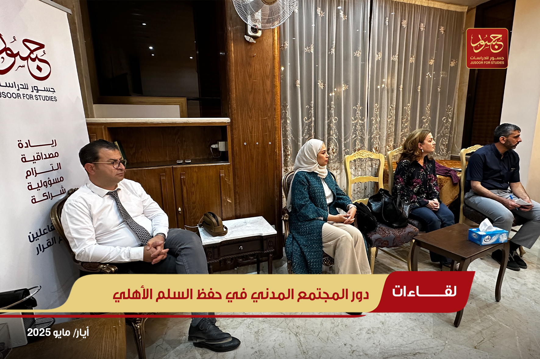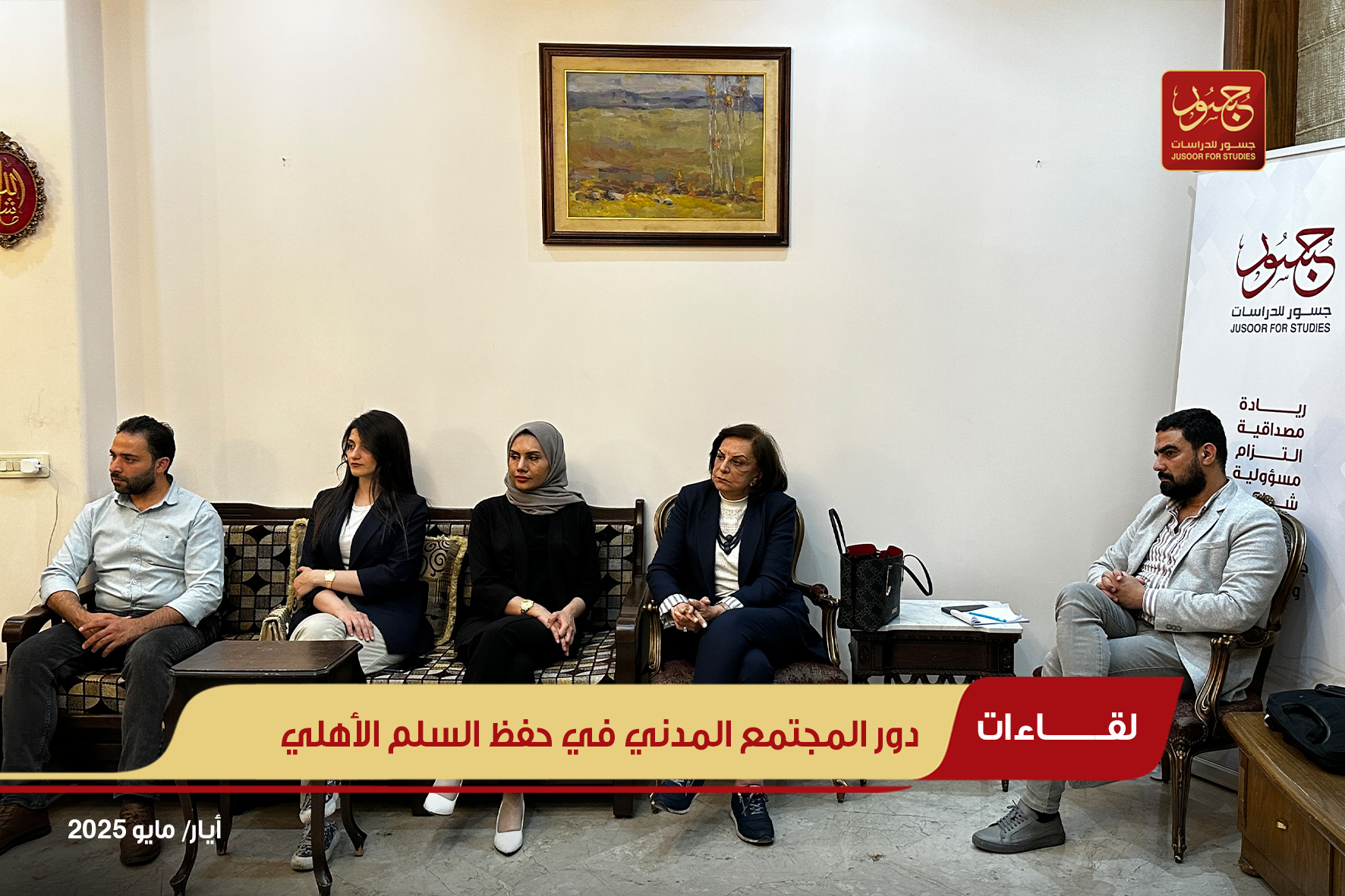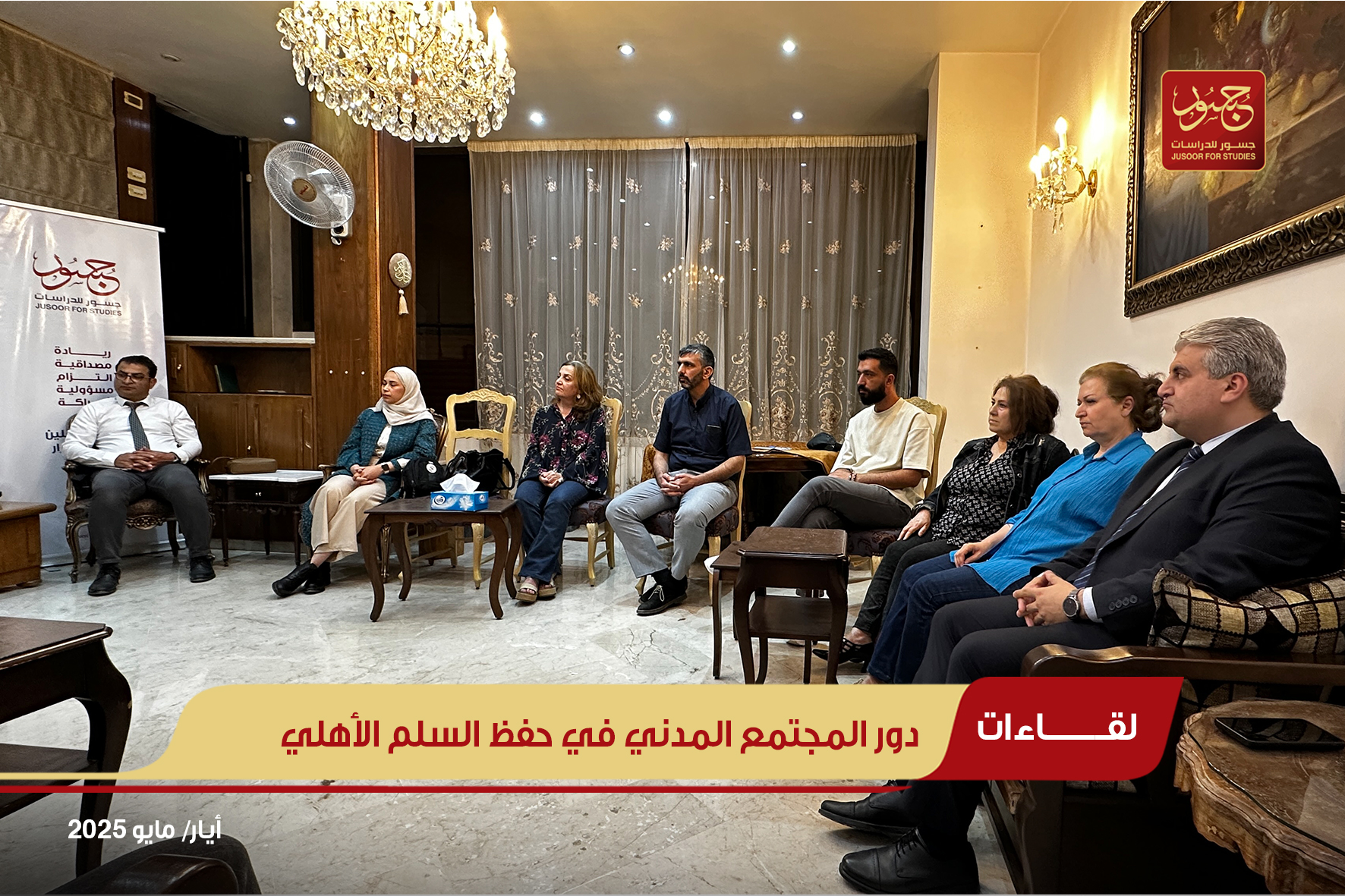هذه المواضيع وغيرها ناقشها نخبة من السوريات والسوريين العاملين في المجال البحثي والإعلامي وقوى المجتمع المدني ومنظماته، خلال لقاء جمعهم في المكتب الرئيسي لمركز جسور للدراسات في دمشق مساء الجمعة 3 أيار/ مايو 2025.