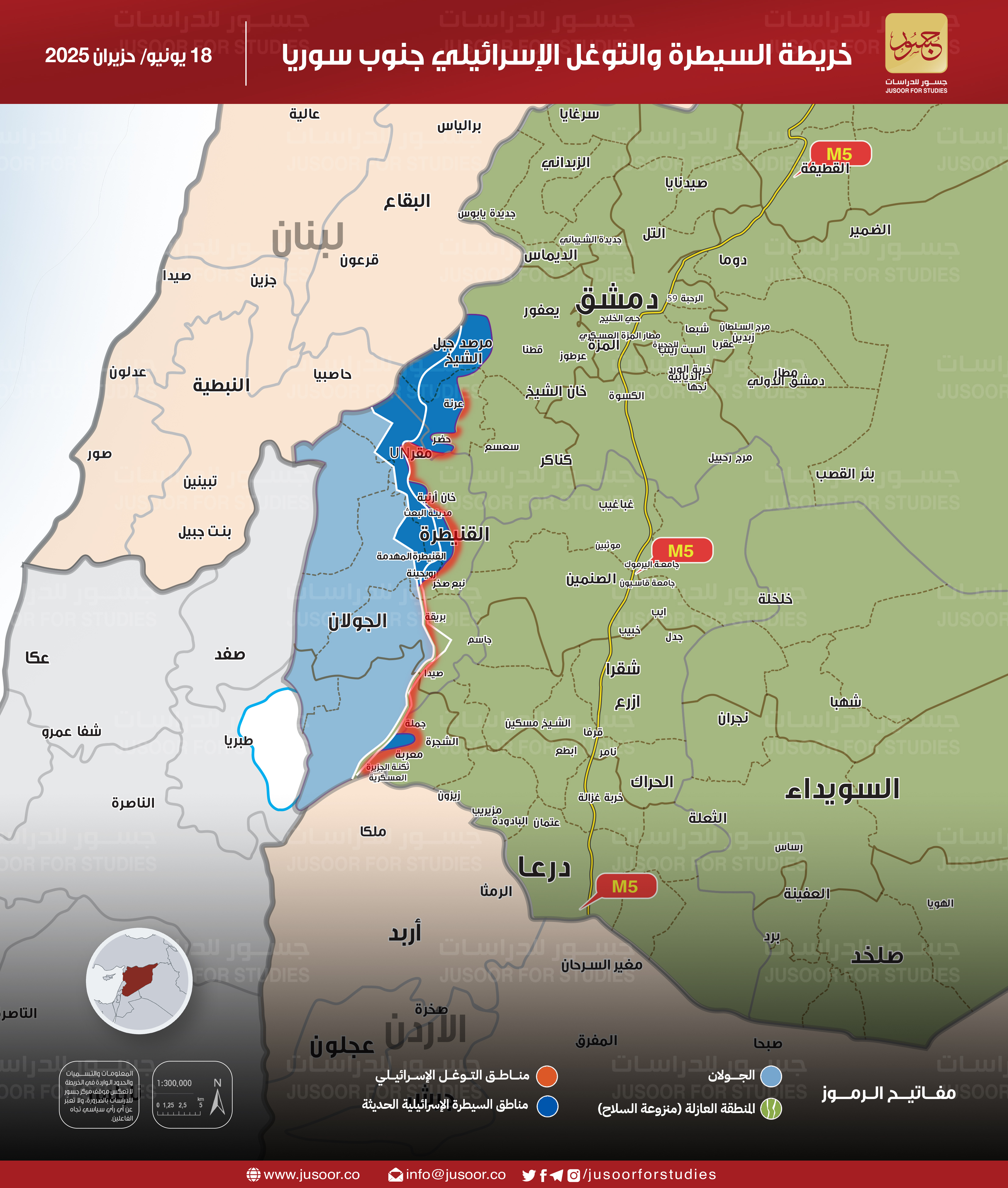 خلال اجتماعه في 16 شباط/ فبراير مع وزير الخارجية الأمريكي ماركو روبيو، طوّر نتنياهو خطابه في أسباب التحرك الإسرائيلي نحو منع إيران من إنشاء "جبهة إرهابية جديدة" قرب مرتفعات الجولان، ثم طالب في 24 شباط/ فبراير بنزع السلاح الكامل من جنوب سوريا، وأكد أن إسرائيل لن تسمح لأي من قوات هيئة تحرير الشام، أو القوات السورية بدخول المنطقة جنوب دمشق، وأن إسرائيل لن تسمح بأي تهديد للدروز في جنوب سوريا.
