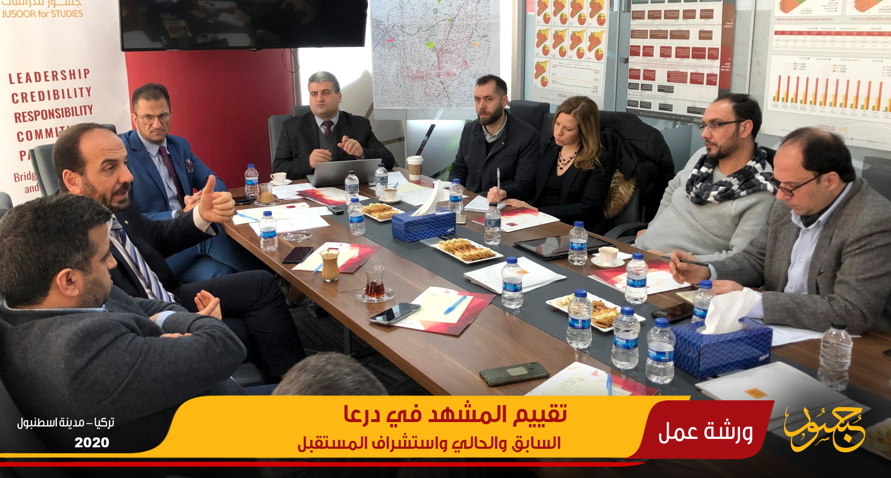 عقد مركز جسور للدراسات الأربعاء 23 أيلول/سبتمبر 2020 ورشة عمل شارك فيه نخبة من الفاعلين في المجتمع المدني السوري إضافة لخبراء وباحثين، وذلك لنقاش وتطوير الدراسة التي أعدها الباحث في مركز جسور للدراسات...
