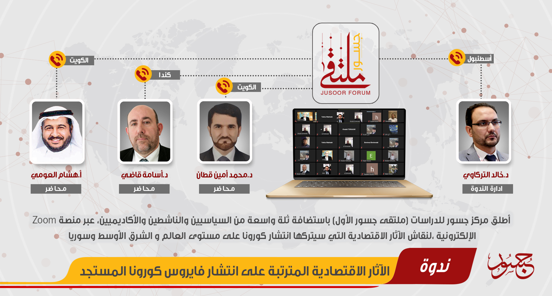 أقام مركز جسور للدراسات بالاشتراك مع مركز دراسات الشرق الأوسط (أورسام) ندوةً حواريّةً مشتركةً يوم الجمعة 24 تموز/يوليو 2020 بَدَأَها كلٌّ من الدكتور أحمد أويصال والأستاذ محمد سرميني بالترحيب بالمشاركي...