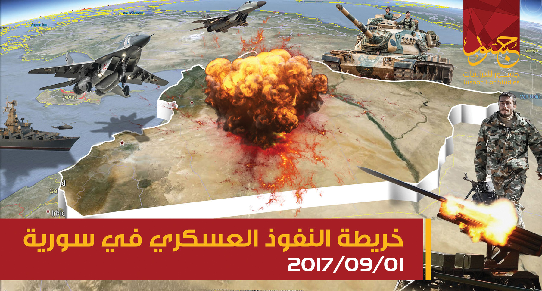أصدر مركز جسور للدراسات خارطة النفوذ العسكري في سورية عن النصف الأول من شهر أيلول/ سبتمبر 2017، على ضوء التغيرات العسكرية البارزة شرق البلاد، والتي تظهر تغيراً في نسب السيطرة الكلية بين مختلف القوى، ب...