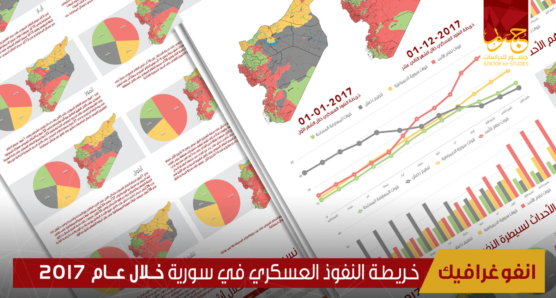 أصدر مركز جسور للدراسات خارطة النفوذ العسكري في سورية لشهر كانون الثاني/ يناير 2018، والتي تُظهر استمراراً في تغير نسب السيطرة الكلية بين أغلب القوى، حيث تتزايد مساحة سيطرة النظام السوري بشكل ملحوظ، و...