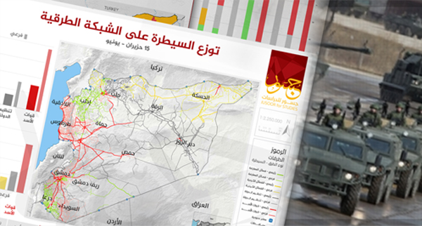 أصدر مركز جسور خارطة تُظهر سيطرة الأطراف المختلفة في سورية على الشبكة الطرقية المعبدة فيها، وبشكل خاص على الطرق الرئيسية والطرق الفرعية من الدرجة الأولى. ويُقصد بالطرق الرئيسية في هذه الخارطة كل الطرق...