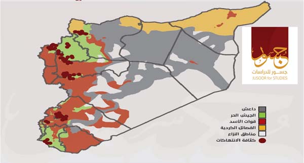 رصد مركز جسور للدراسات غارات الاسلحة المحرمة دولياً في سوريا في الفترة من 1/6/2016 الى 15/8/2016