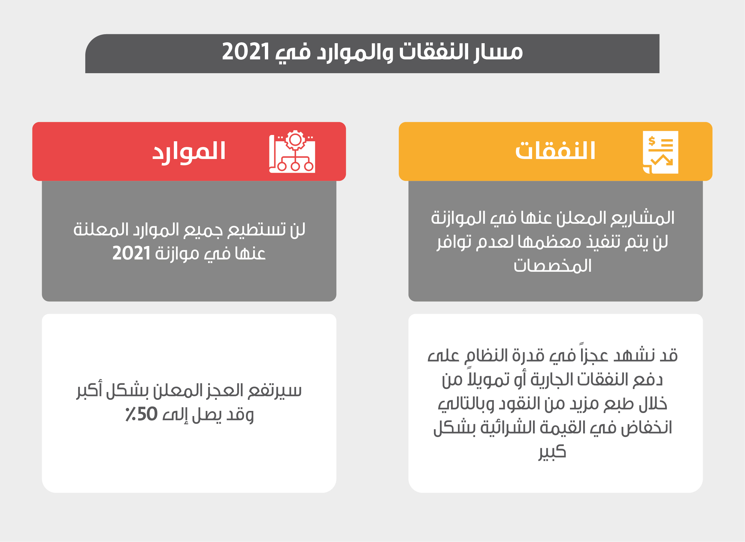 ويتوقع أن تواجه هذه الموازنة بشكل خاص وكل قطاع المالية العامة للدولة بشكل عام عدة مشاكل في 2021 أبرزها: