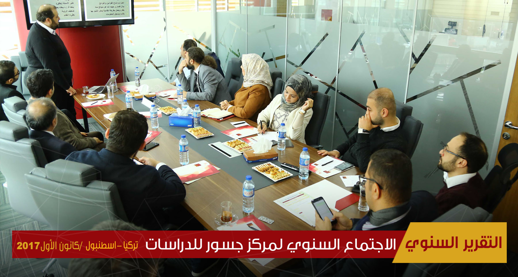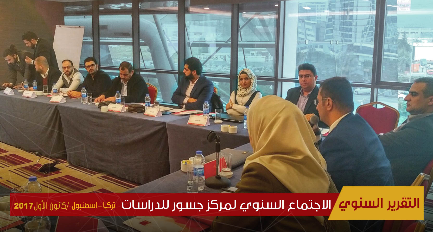 عقد مركز جسور للدراسات في اسطنبول اجتماعه السنوي يوم الجمعة 22/ كانون الثاني- ديسمبر /2017 بمناسبة مرور عامين على تأسيس المركز، بحضور السيد مدير المركز والسادة مدراء الوحدات والباحثين والموظفين الإداريين ومشاركة بعض الضيوف، ويعد الاجتماع السنوي فرصة للقاء جميع القائمين على المركز لوضع الخطة السنوية ومناقشة بعض الآليات والرؤى التخطيطية للمستقبل كما تناقش فيه بعض الصعوبات بهدف تذليلها لصالح سير العمل نحو أهداف المركز كما يهدف اللقاء إلى توثيق العلاقات بين الوحدات العاملة.