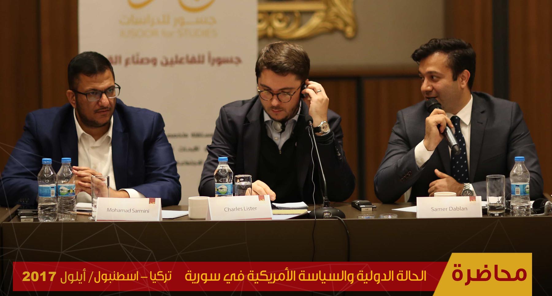 ألقى الباحث الأمريكي المهتم بالشأن السوري تشارلز ليستر محاضرة بعنوان "الحالة الدولية والسياسة الأمريكية في سورية"، وذلك بدعوة من مركز جسور للدراسات يوم الخميس 5/10/2017 في مدينة إسطنبول.