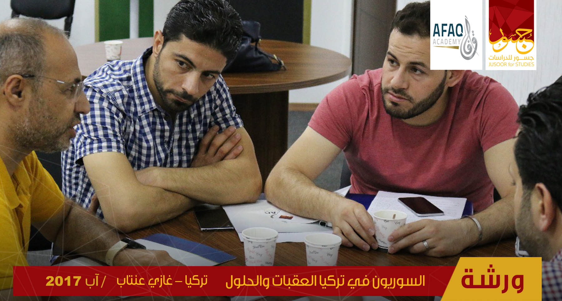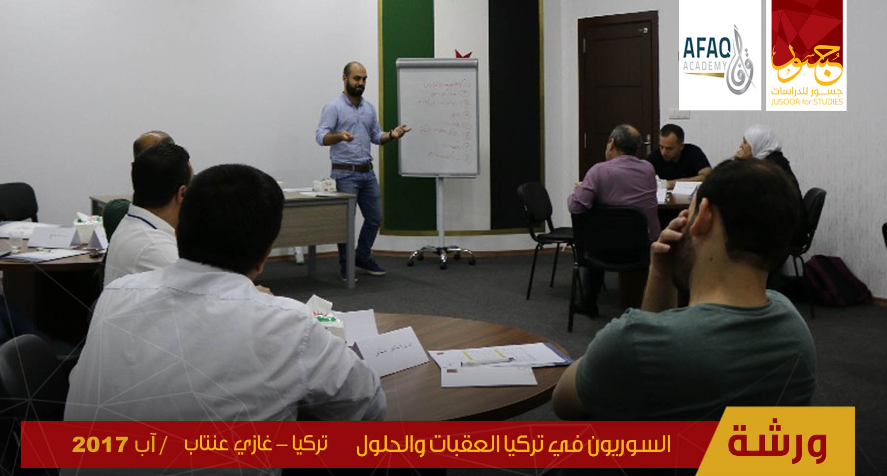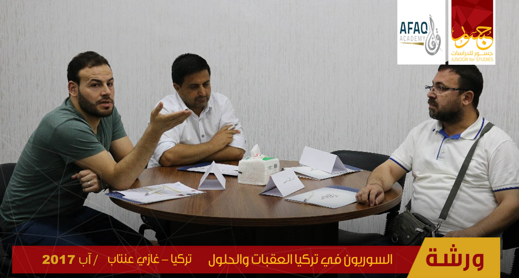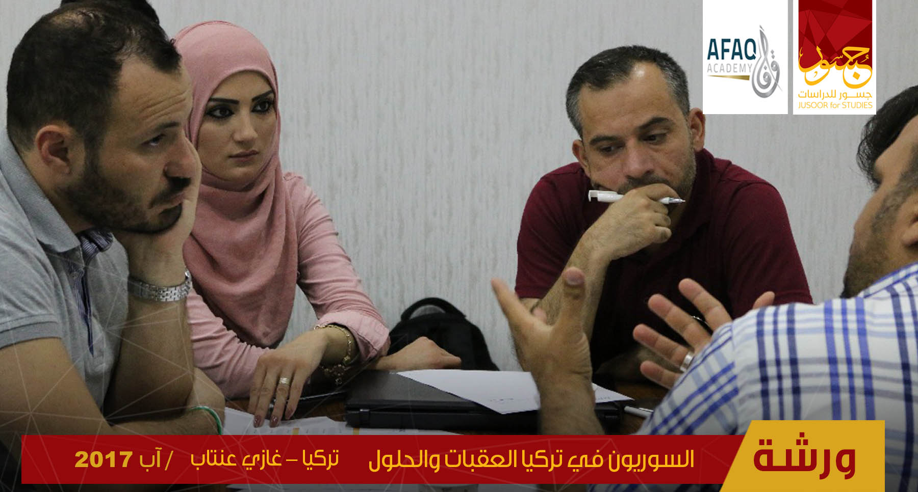 أقام مركز جسور للدراسات وأكاديمية آفاق، في 24-25 آب/ أغسطس 2017، ورشة عمل بعنوان "السوريون في تركيا: العقبات والحلول".