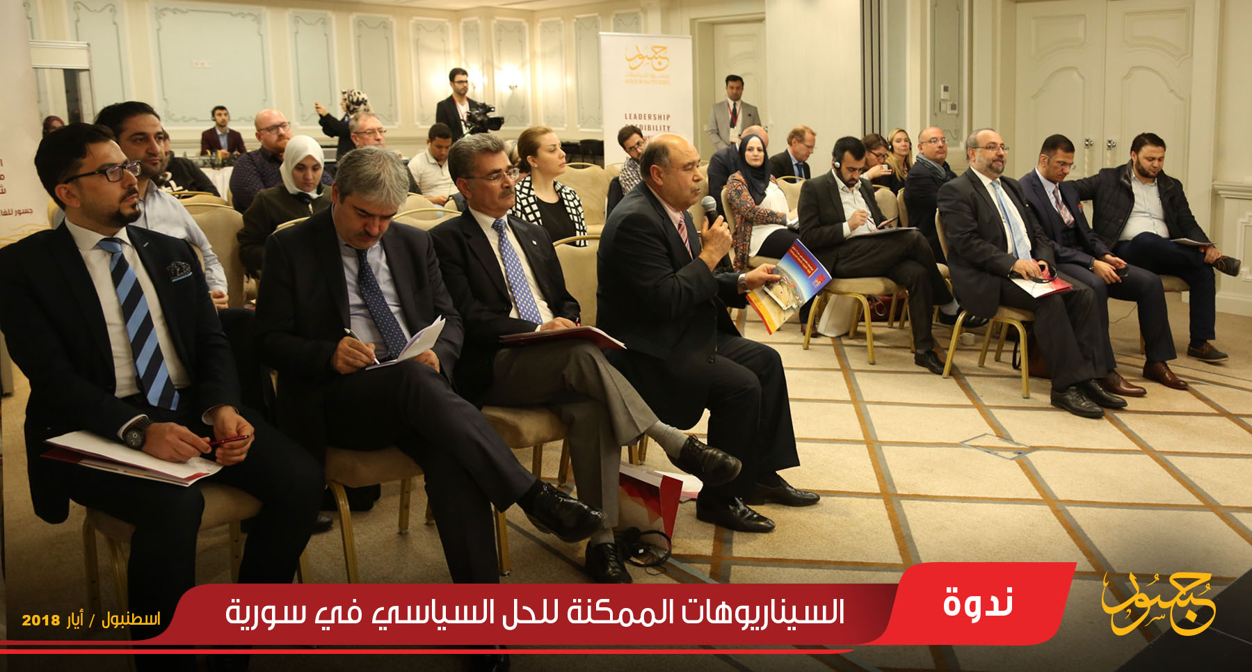 "السيناريوهات الممكنة للحل السياسي في سورية " بحضور كل من السيد عبيدة نحاس رئيس حركة التجديد الوطني والسيد نديم شحادة مدير مركز فارس لدراسات شرق المتوسط التابع لجامعة تافتس كمتحدثين،  ومجموعة من السياسيين والمعنيين بالشأن السوري, وعدد من الصحفيين الأجانب وشخصيات اعلامية تركية.