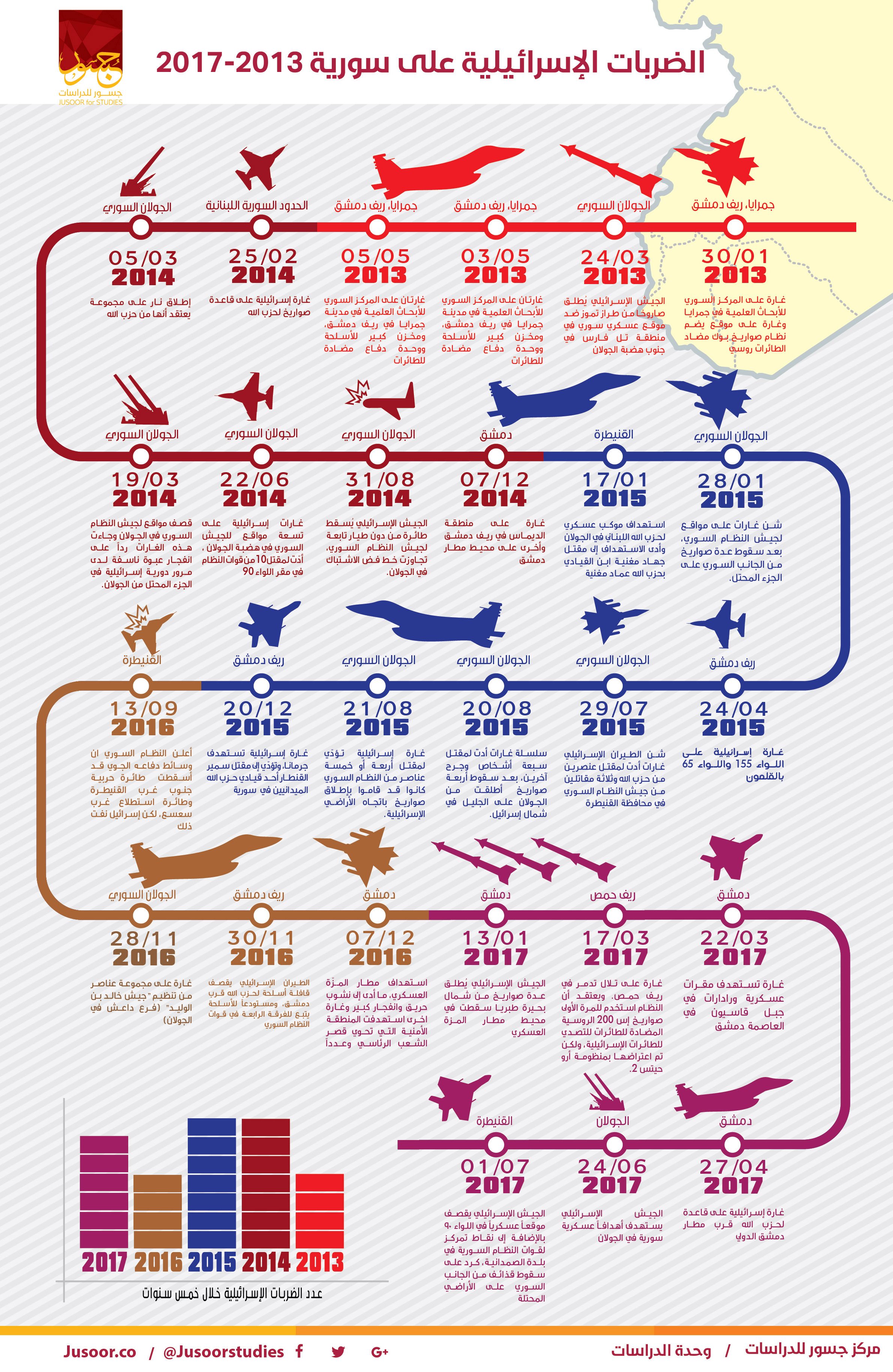 وفي 19/7/2017 صرّح رئيس الوزراء الإسرائيلي بأن إسرائيل قامت خلال السنوات الماضية بالعشرات من الغارات على سورية .