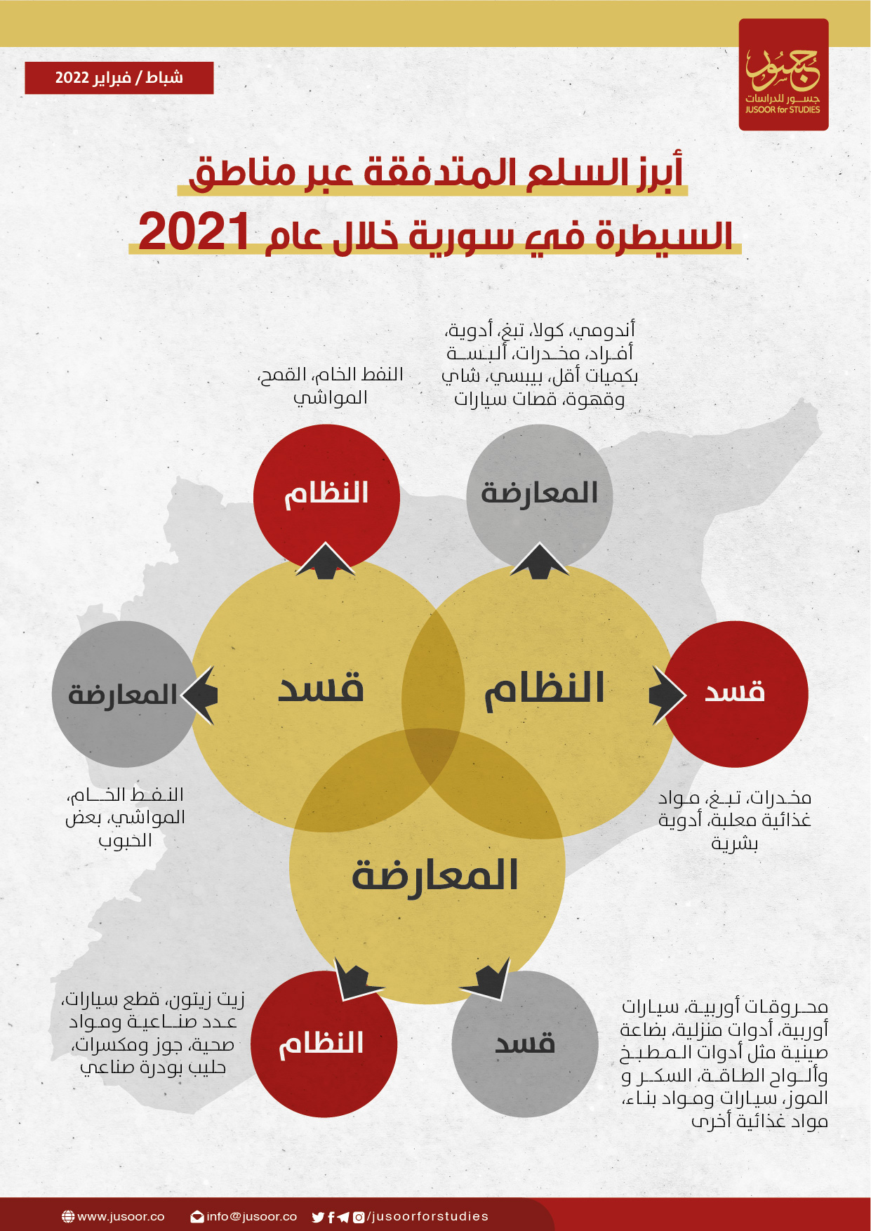 على نحو بالغ التعقيد، حيث تلتقي المصالح بين الأطراف المتنازعة وتتباعد بين الأطراف المتصالحة. هكذا يبدو مشهد العلاقات الاقتصادية بين القُوى الفاعلة في سورية، الذي يزداد تعقيداً مع مرور الوقت؛ بعدما باتت سورية ساحة صراع دولي اجتمعت فيها أطراف محلية وإقليمية وأخرى دولية.
