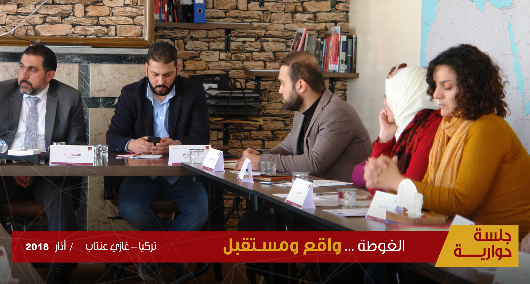 وكانت محاور الجلسة تتضمن الحديث عن موقع الغوطة من سيناريوهات الجنوب السوري، وعمّا إن كان هناك عودة لروسيا بطرح سيناريو سوريا المفيدة وتحديد نطاقها الجغرافي من جديد على ضوء التطورات العسكرية في مجمل الجغرافية السورية، وحاولت الجلسة الإجابة عن آفاق حل مسألة الغوطة أمام المعارضة السورية المسلح منها والسياسي.