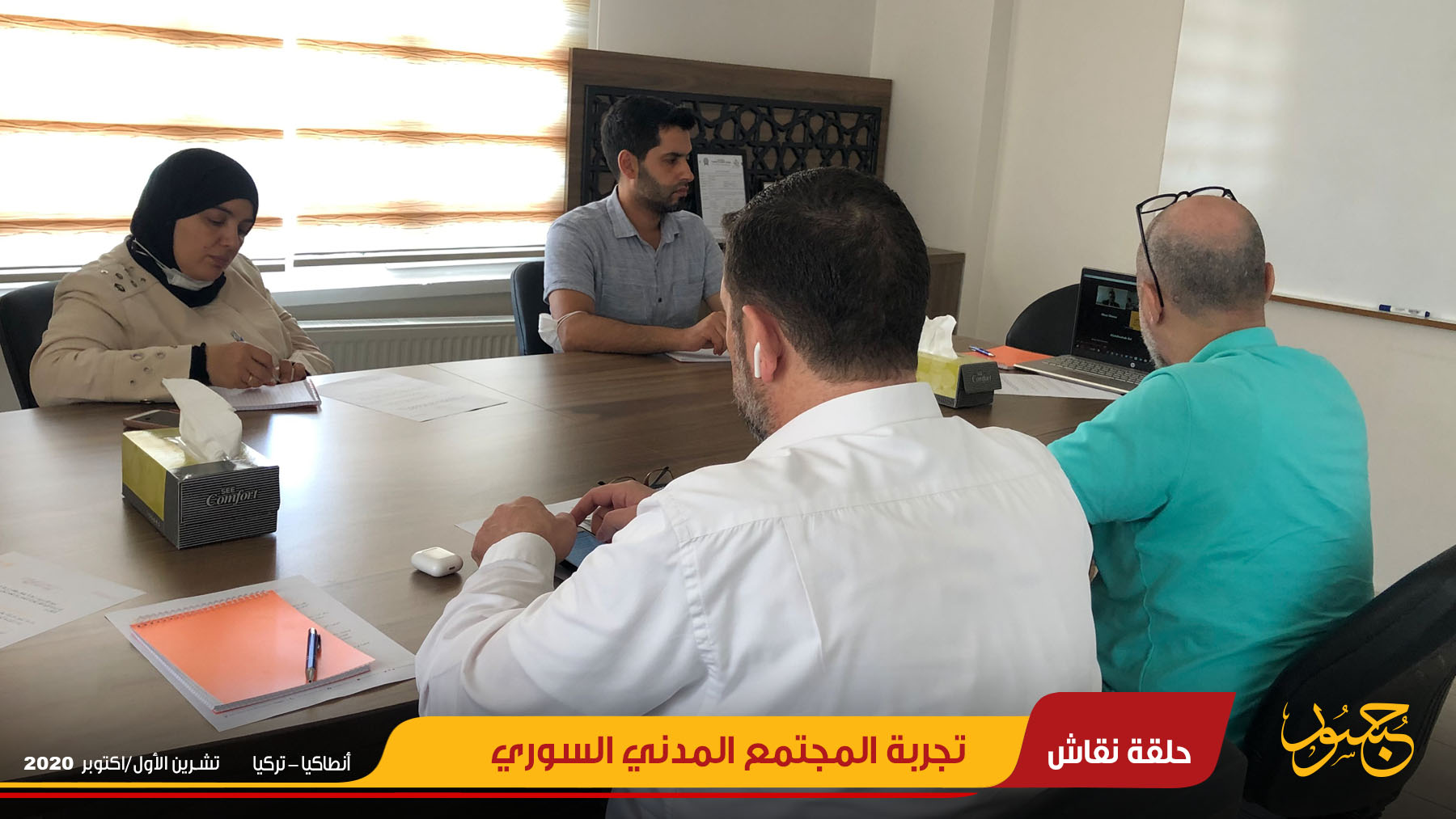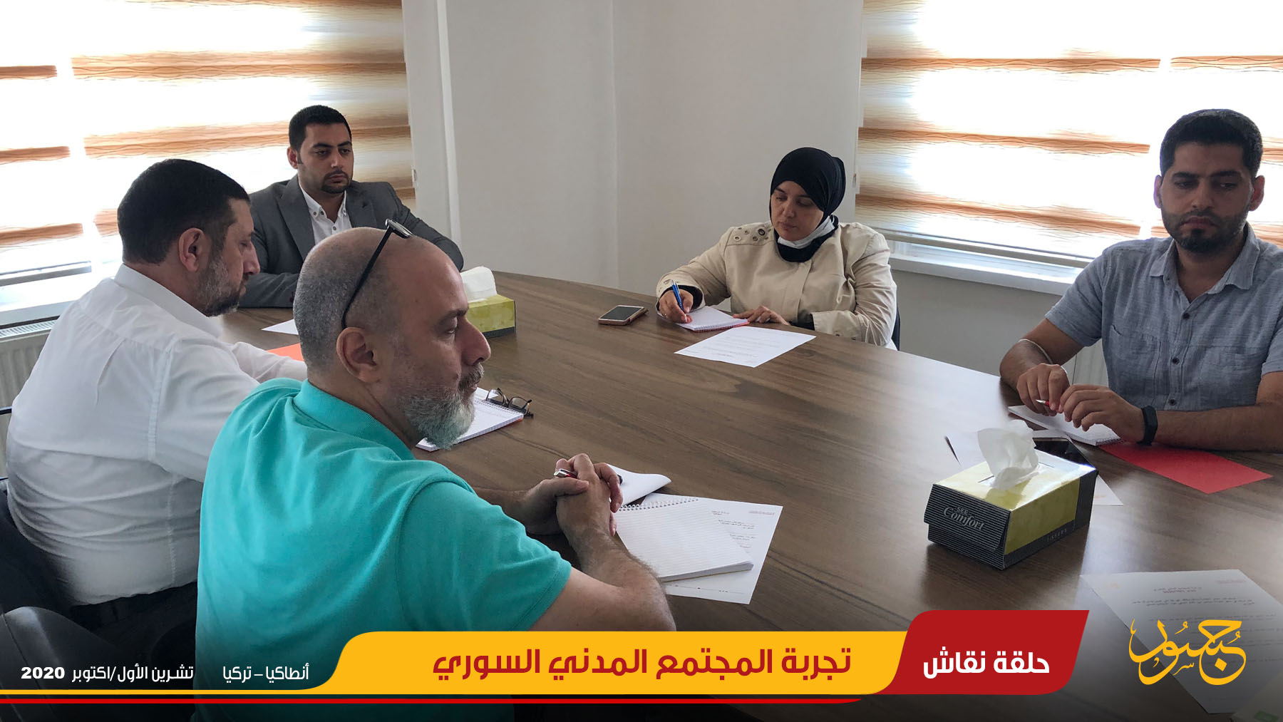 استضاف مركز جسور للدراسات في مدينة أنطاكيا بولاية هاتاي التركية حلقة نقاش شارك فيها فاعلين في المجتمع المدني، وذلك بتاريخ الأول من تشرين الأول/أكتوبر 2020.