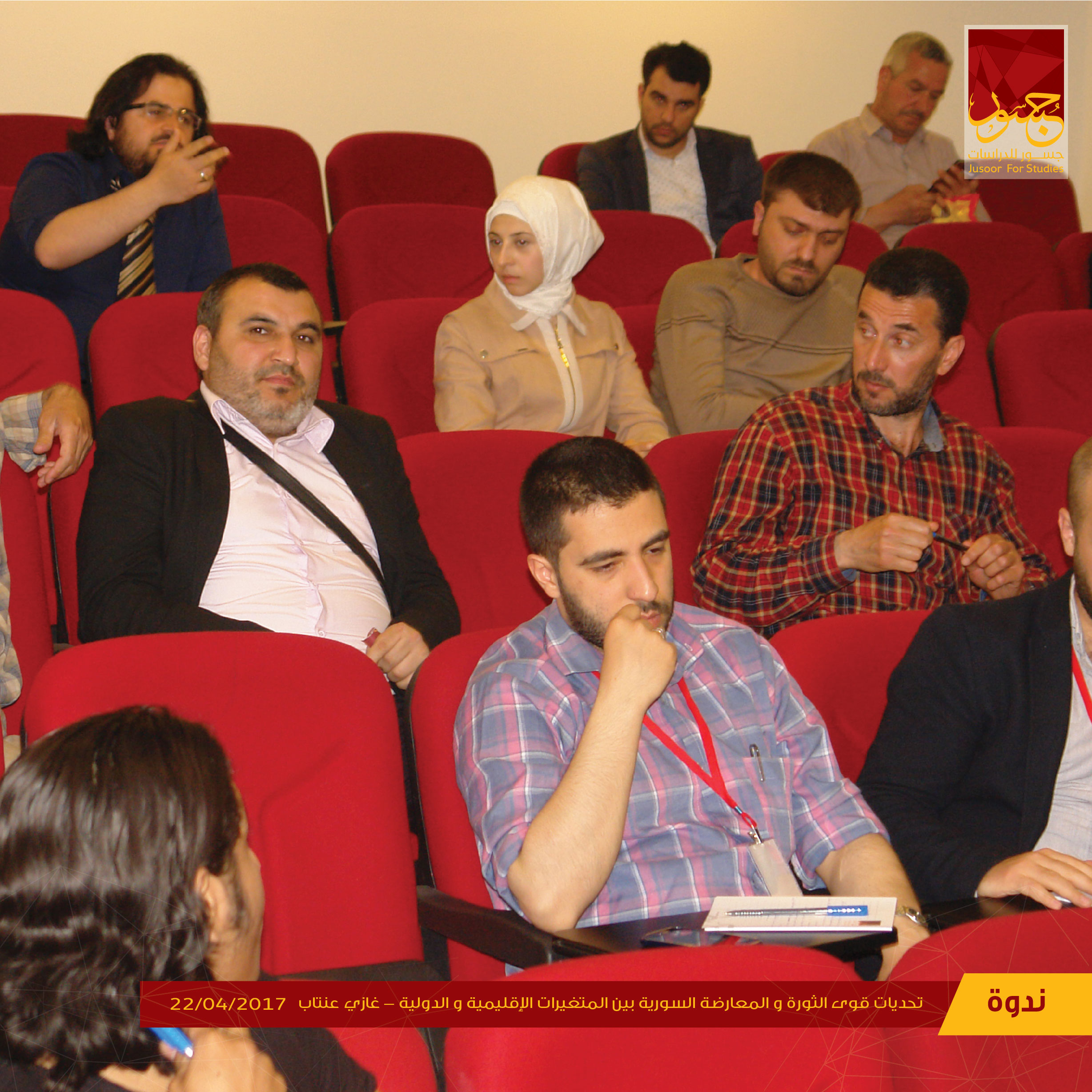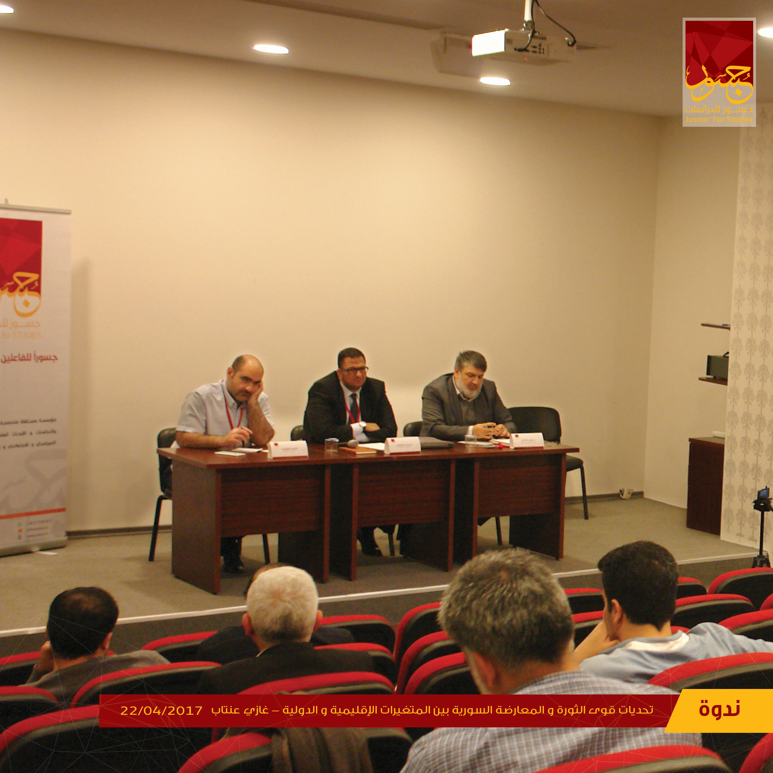 أقام مركز جسور للدراسات يوم السبت، 22 نيسان/ أبريل 2017، ندوة في مدينة غازي عنتاب التركية بعنوان "تحديات قوى الثورة والمعارضة السورية بين المتغيرات الإقليمية والدولية"، تحدّث فيها كل من "رامي دالاتي" مدير وحدة الدراسات الدينية في مركز جسور للدراسات، وأسعد العشي مدير عام منظمة "بيتنا سوريا".