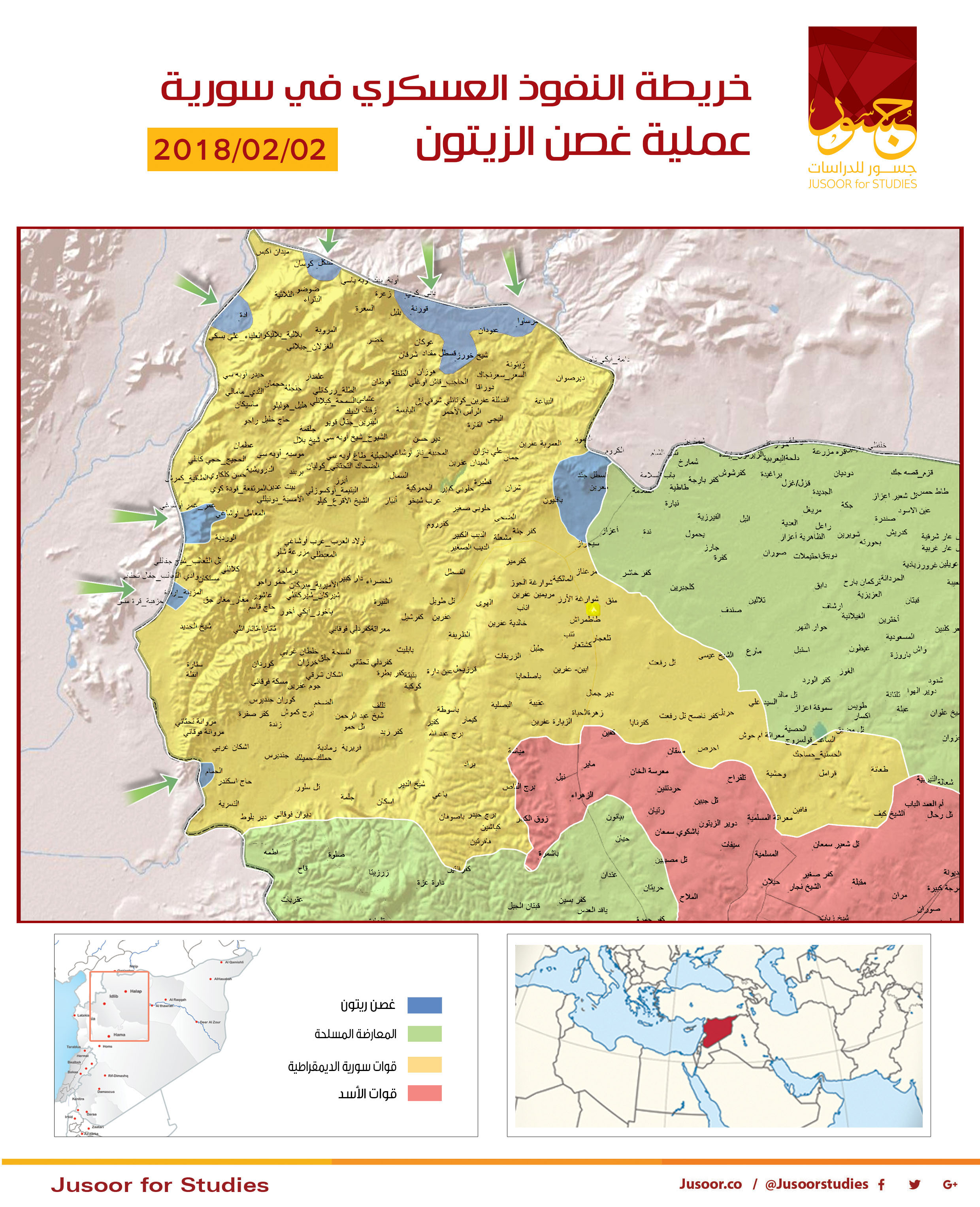 خريطة النفوذ العسكري في سورية 02-02-2018