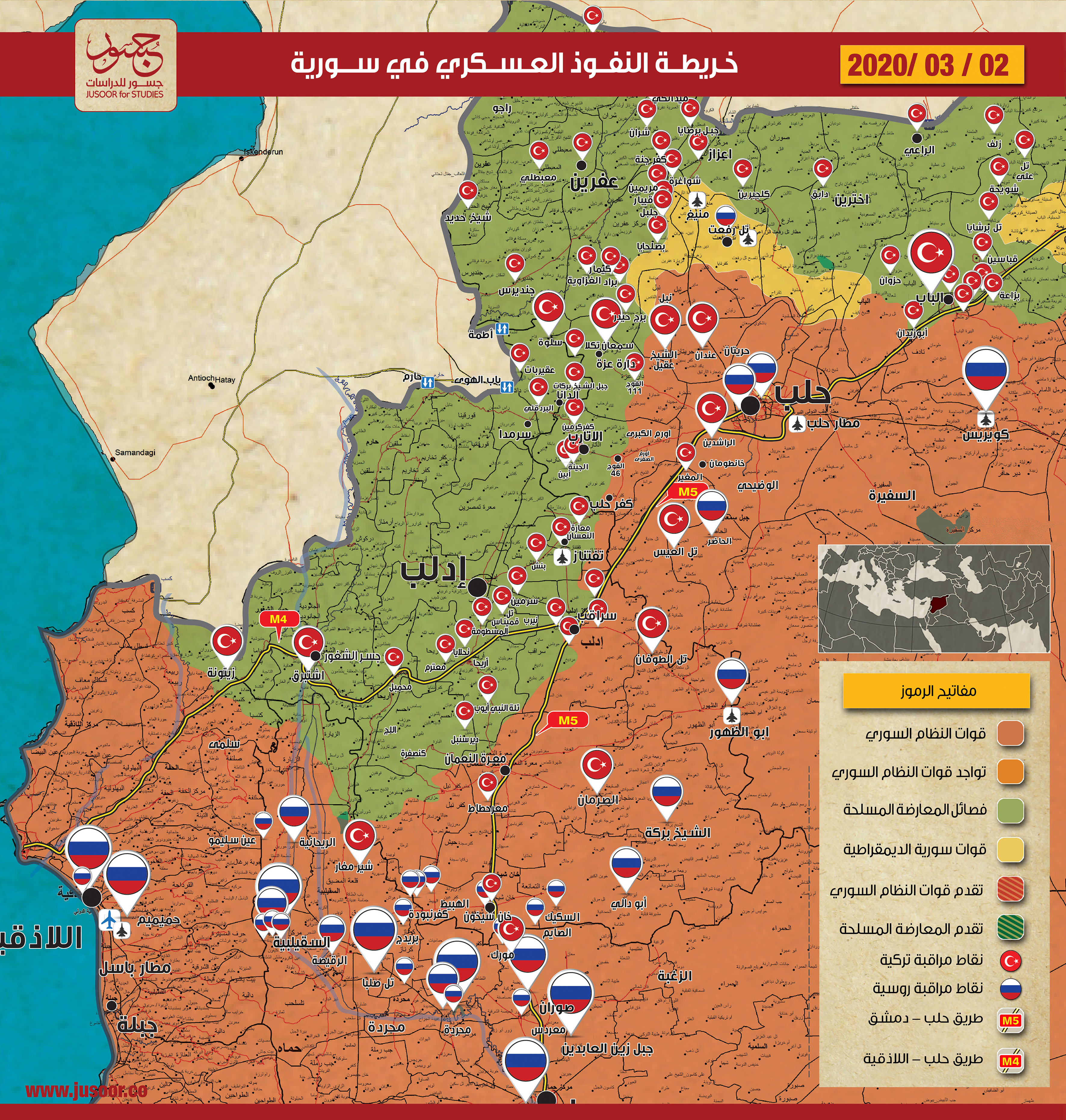 خريطة النفوذ العسكري في سورية 02-03-2020