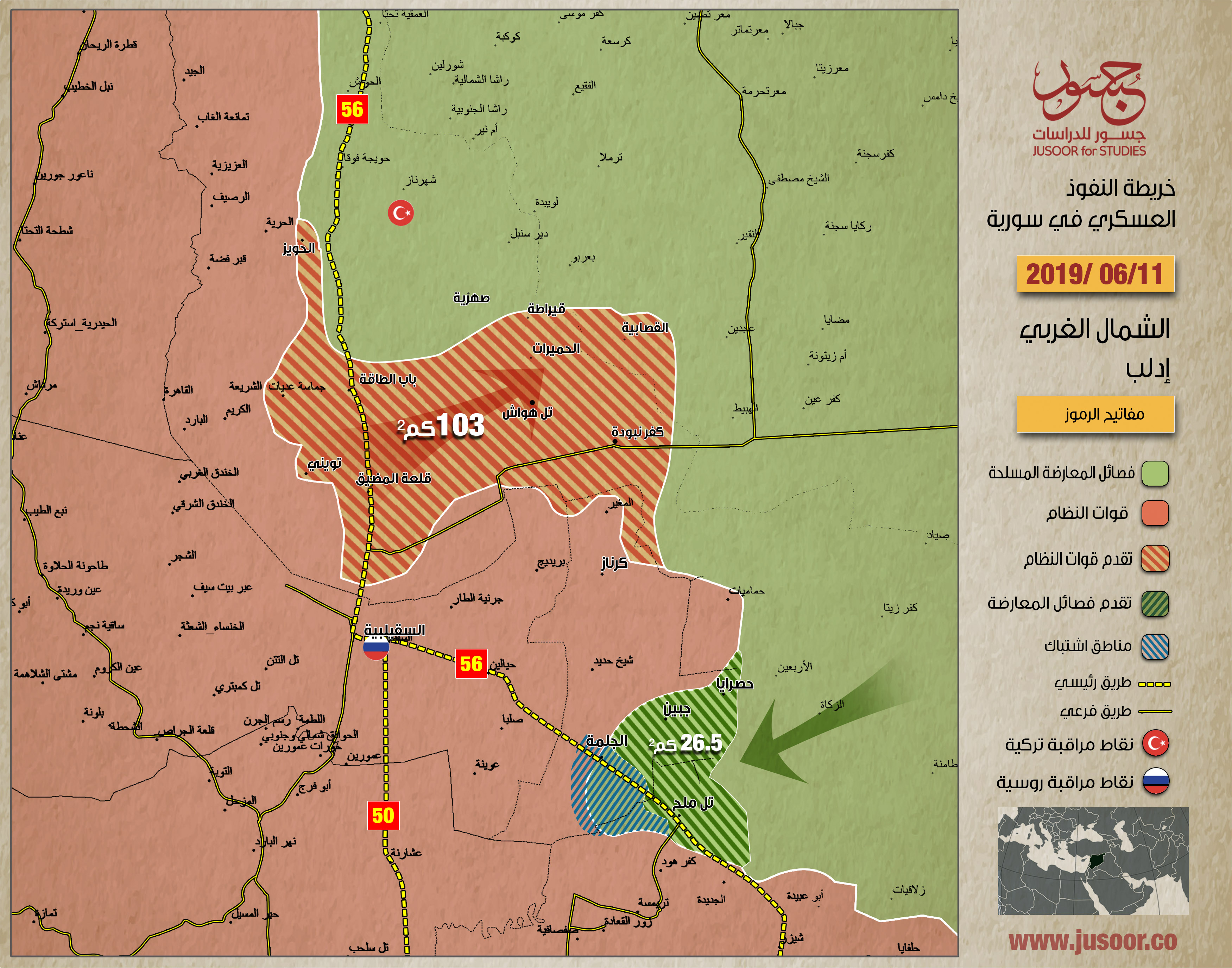 وقد أرادت فصائل المعارضة على ما يبدو تحقيق اختراق في جبهة جنوب إدلب على غرار الهجوم الذي شنّته في 13 أيار/ مايو للالتفاف على النظام السوري واستعادة المناطق التي خسرتها حينما سيطرت على تلّة الحماميات وأخفقت بالتقدم نحو بلدة كرناز، لكن الهجوم الجديد الذي نفّذته يختلف من حيث توسيع الخط الناري والسيطرة على مواقع حيوية تساعد على قطع طرق إمداد قوات النظام. وبالفعل ما زالت الفصائل تفرض سيطرتها على تلك المناطق، في حين وجّه هذا الأخير كامل قوّته لاستردادها وجمّد عملياته في بقية جبهات ريفي حماة وإدلب.