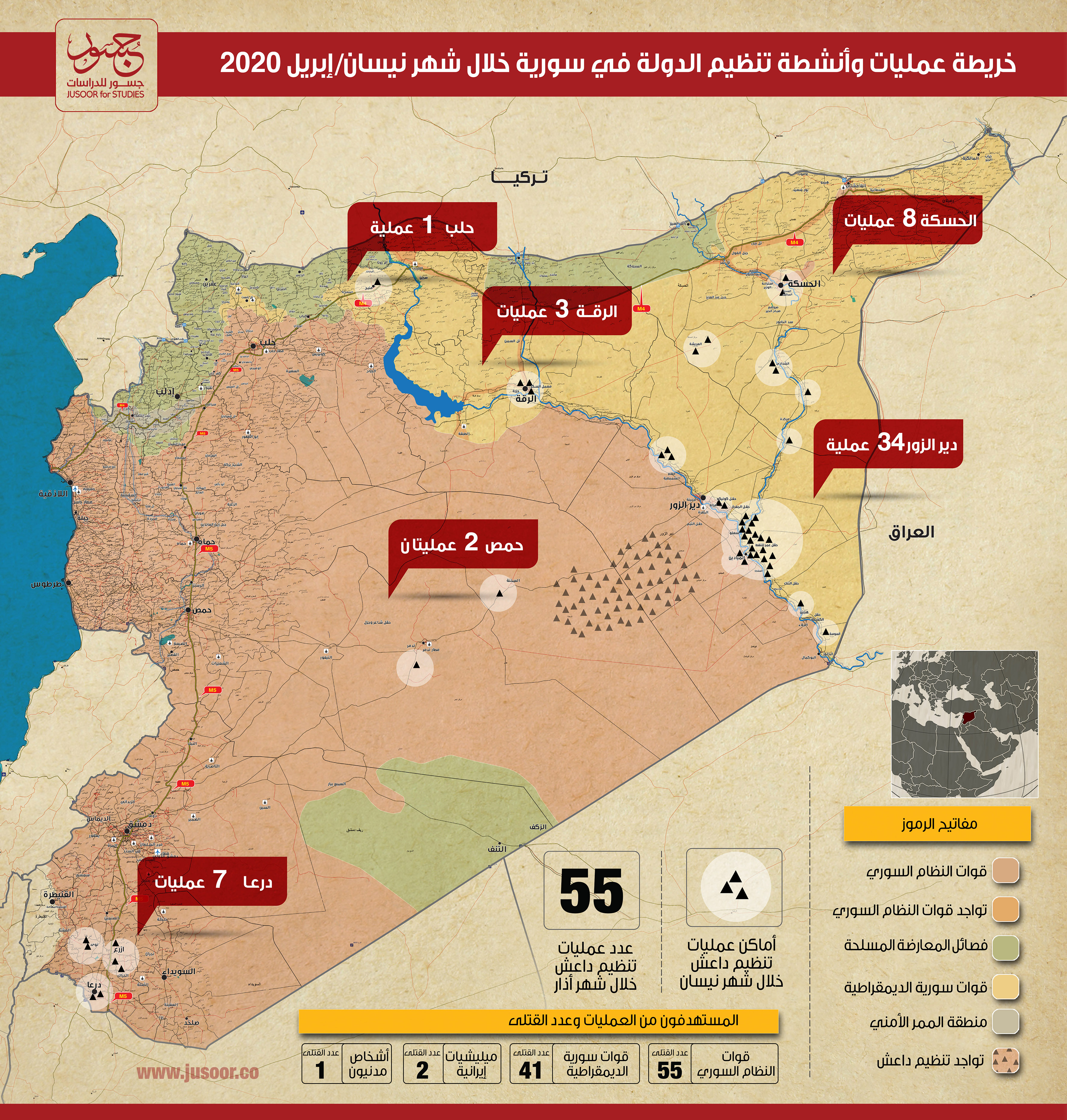 خريطة عمليات وأنشطة تنظيم الدولة في سورية خلال شهر نيسان-إبريل 2020