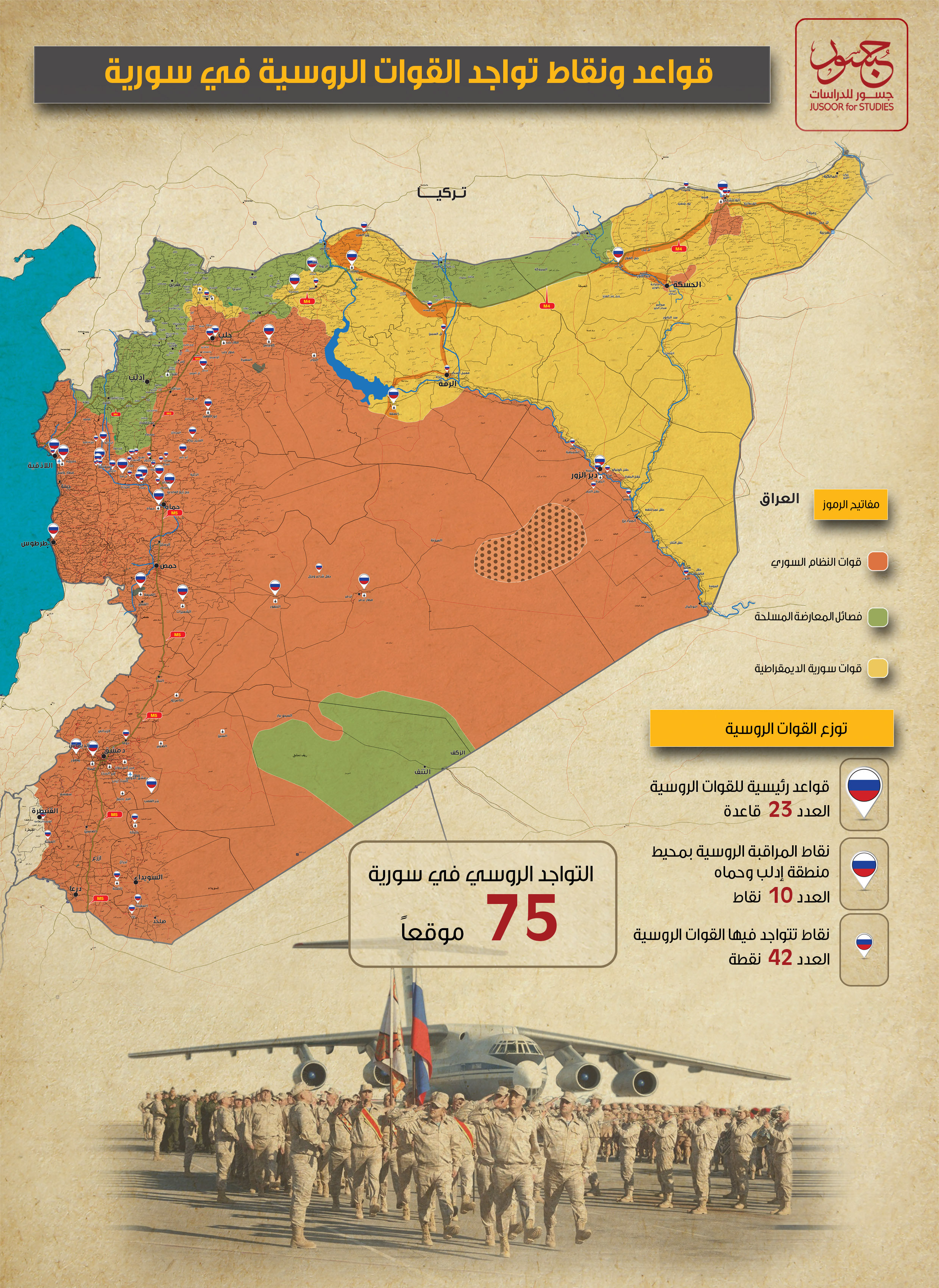 تمكنت روسيا من خلال تدخُّلها في سورية من حماية قاعدتها العسكريَّة الموجودة أصلاً في سورية، وتمكّنت من توسيع قواعدها العسكرية منذ ذلك الحين إلى 24 قاعدة، إضافة إلى 42 نقطة مراقبة (انظر الخريطة).
