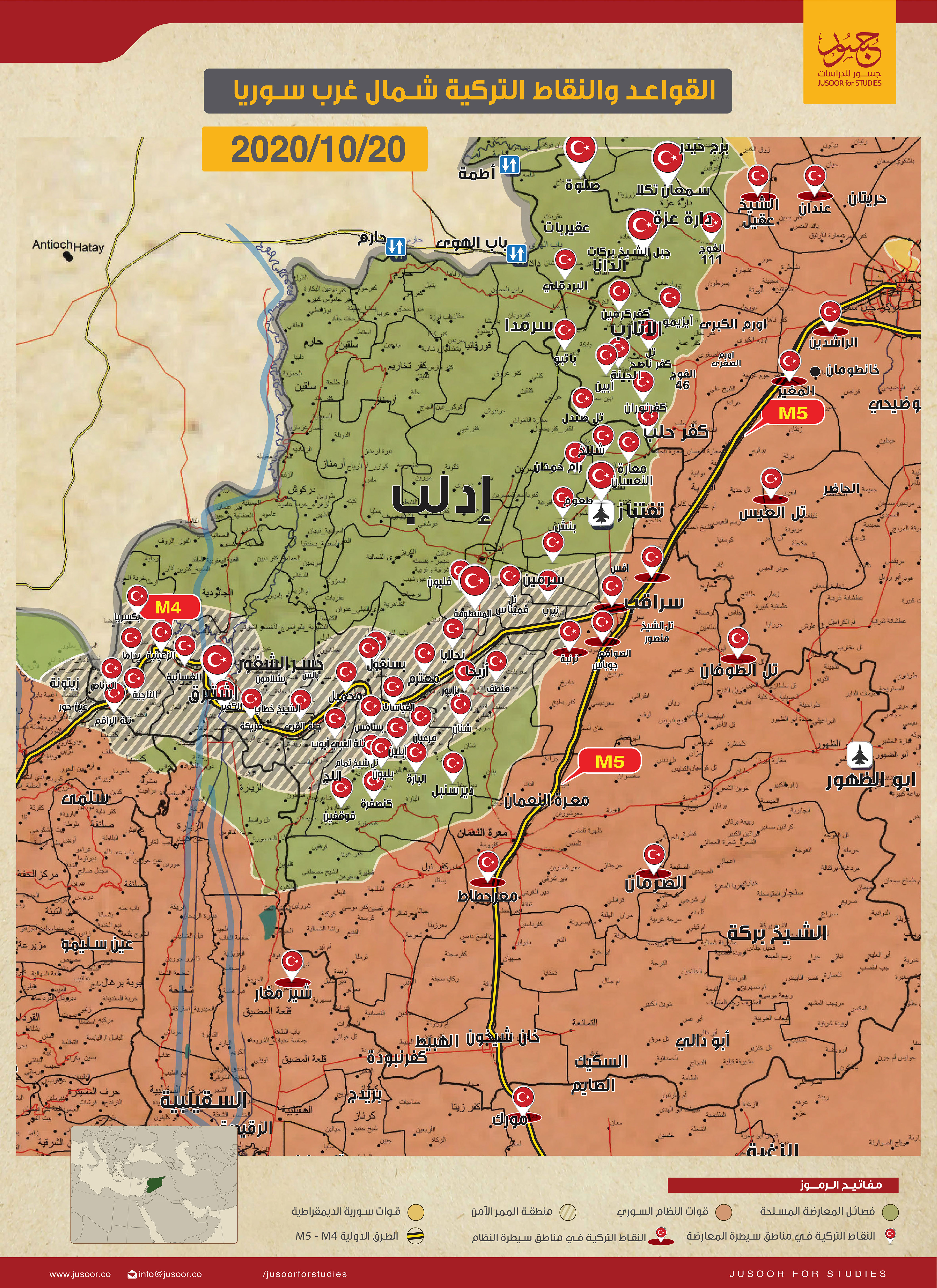 1- تركيا تنسحب من قاعدة شمال غرب سوريا، وكالة رويترز، 19/10/2020: https://reut.rs/2Hevh24