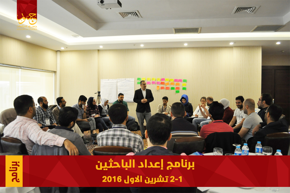 ضمن توجهات عمل مركز جسور للدراسات في مجال الأبحاث والدراسات والإهتمام في دعم هذا المجال وحشد الطاقات العاملة فيه وبناء قدراتها لاسثمارها بالشكل الأمثل لخدمة البحوث وتعويض نقص الكفاءات في هذا المجال ، أتمّ مركز جسور للدراسات خلال الأسبوع الماضي تنفيذ البرنامج التدريبي " إعداد الباحثين " الأول من نوعه الذي تم تنفيذه يومي 1-2 تشرين الأول في مدينة غازي عنتاب التركية بالتنسيق والتعاون مع مركز جسور للتدريب بإشراف المدرب والباحث السوري- الأستاذ عبيدة فارس - مدير المعهد العربي للتنمية والمواطنة في لندن