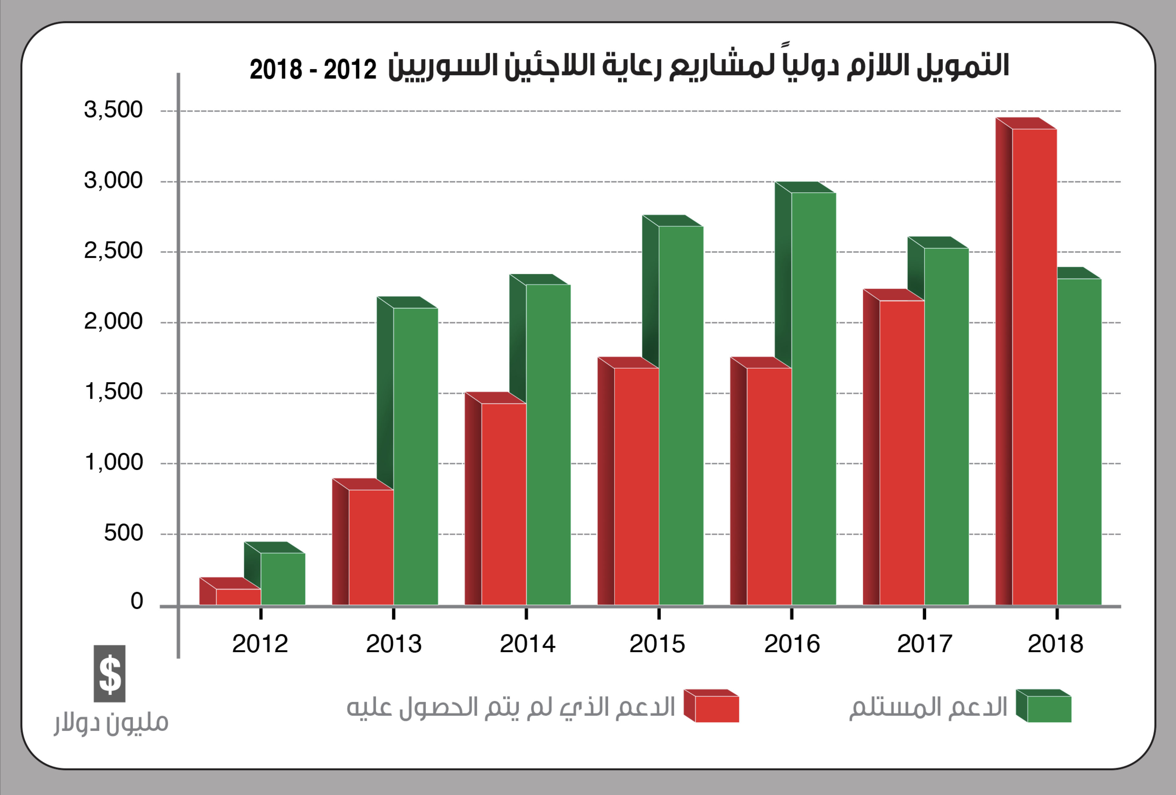 التمويل اللازم دولياً لمشاريع رعاية اللاجئين السوريين 2012-2018 (13)