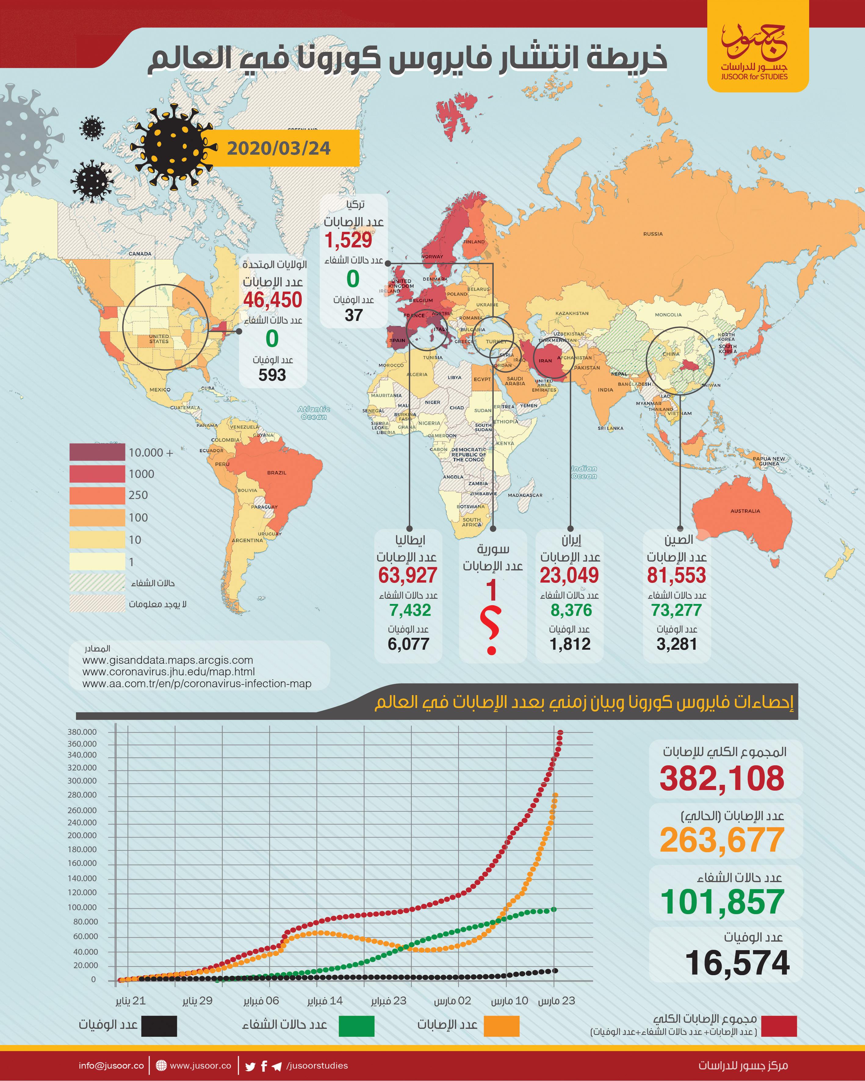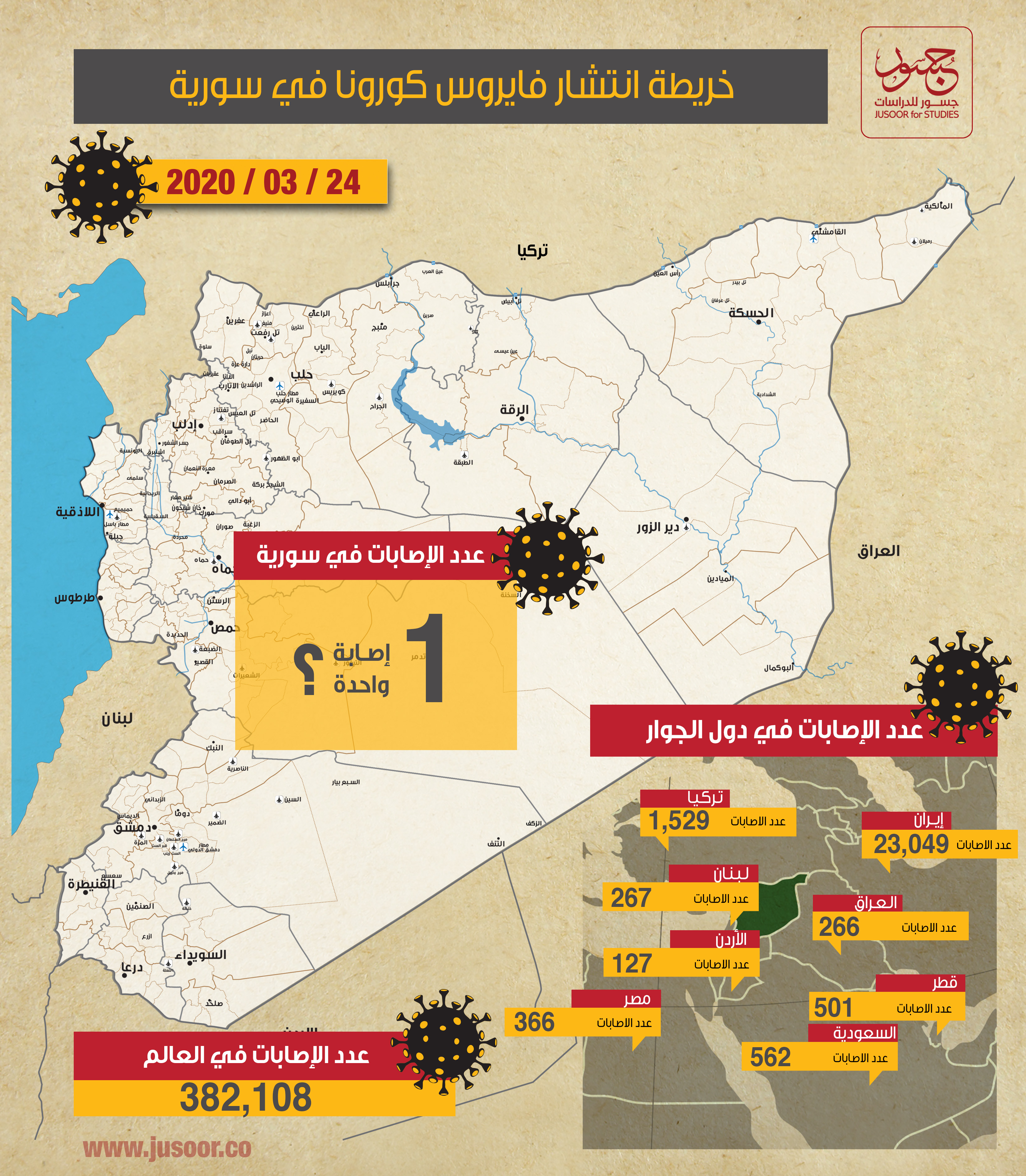 مارس 24, 2020 7119 انفوغرافيك فايروس كورونا في سورية... الواقع والاحتمالات المتوقعة هذه المادة تحتوي على ملف تحميل نسخة PDF شارك المادة حجم الخط A + A -