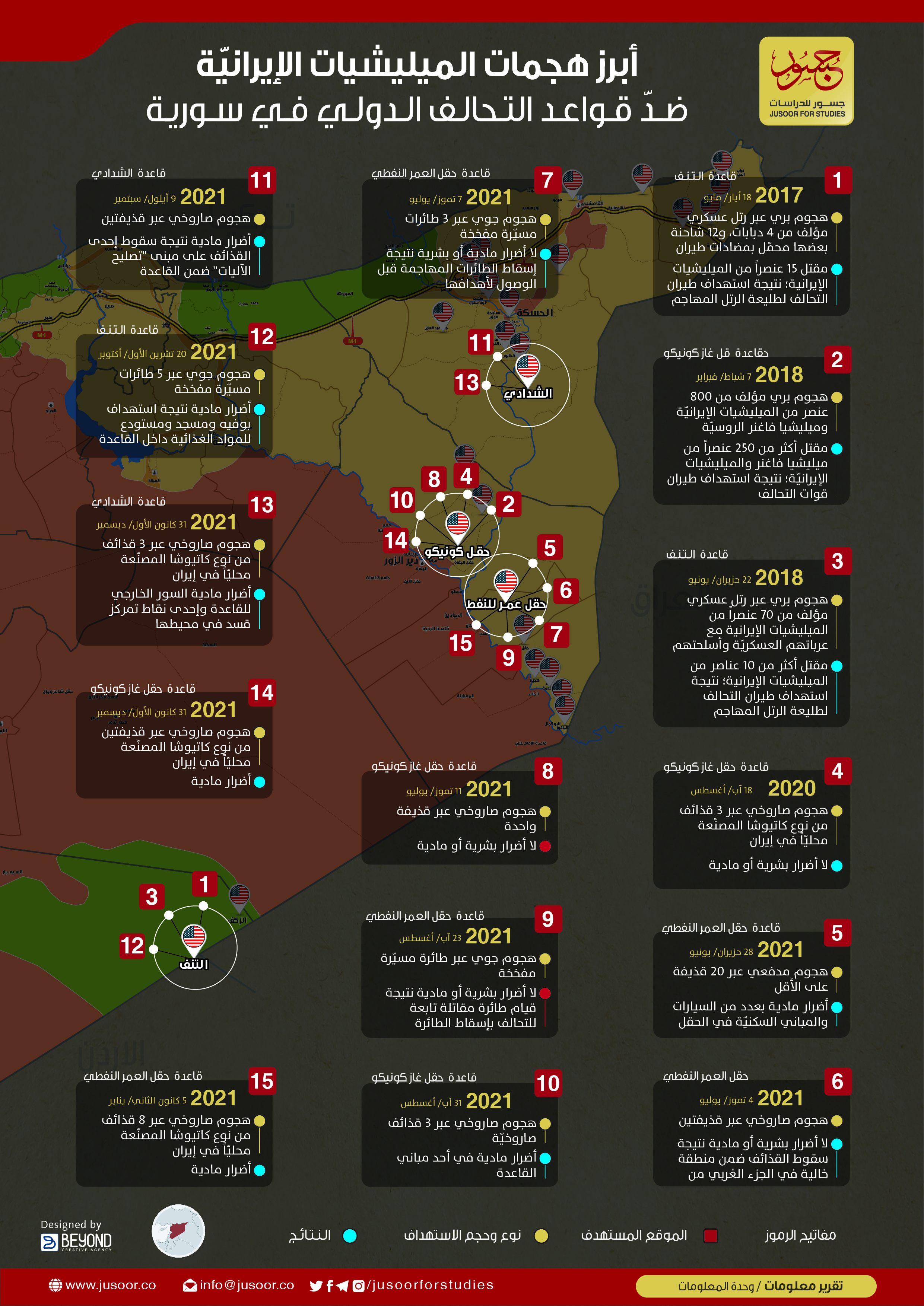 يُعَدّ التصعيد المتبادل الأخير الذي بدأ مع نهاية عام 2021 بين القوات الأمريكيّة والميليشيات الإيرانيّة من أكثر موجات التصعيد التي حصلت بين الطرفين حدّةً وكثافةً، كما أنّه يؤشّر لمرحلة جديدة من طبيعة العلاقة بين الطرفين في سورية.