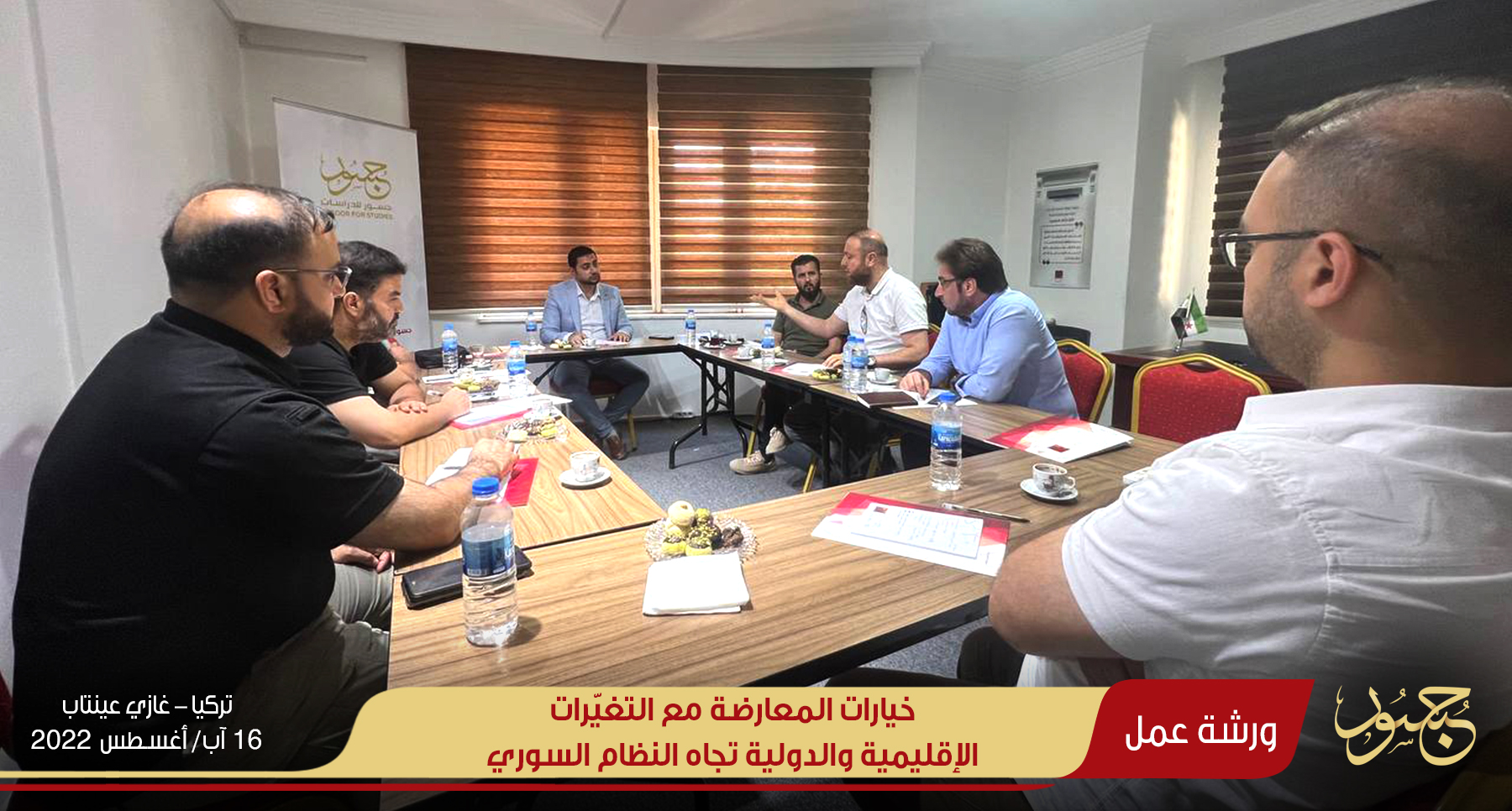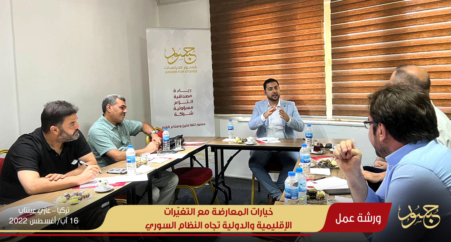 أقام مركز جسور للدراسات في 16 آب/ أغسطس 2022 ورشة عمل سياسية في فرع غازي عنتاب جنوب تركيا، بعنوان: "خيارات المعارضة مع المتغيِّرات الإقليمية والدولية تجاه النظام السوري".