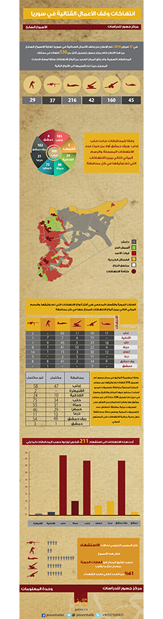 لغاية الإسبوع السابع من هذا الاعلان قام مركز جسور بتسجيل أكثر من 530 انتهاك في مختلف المحافظات السورية,