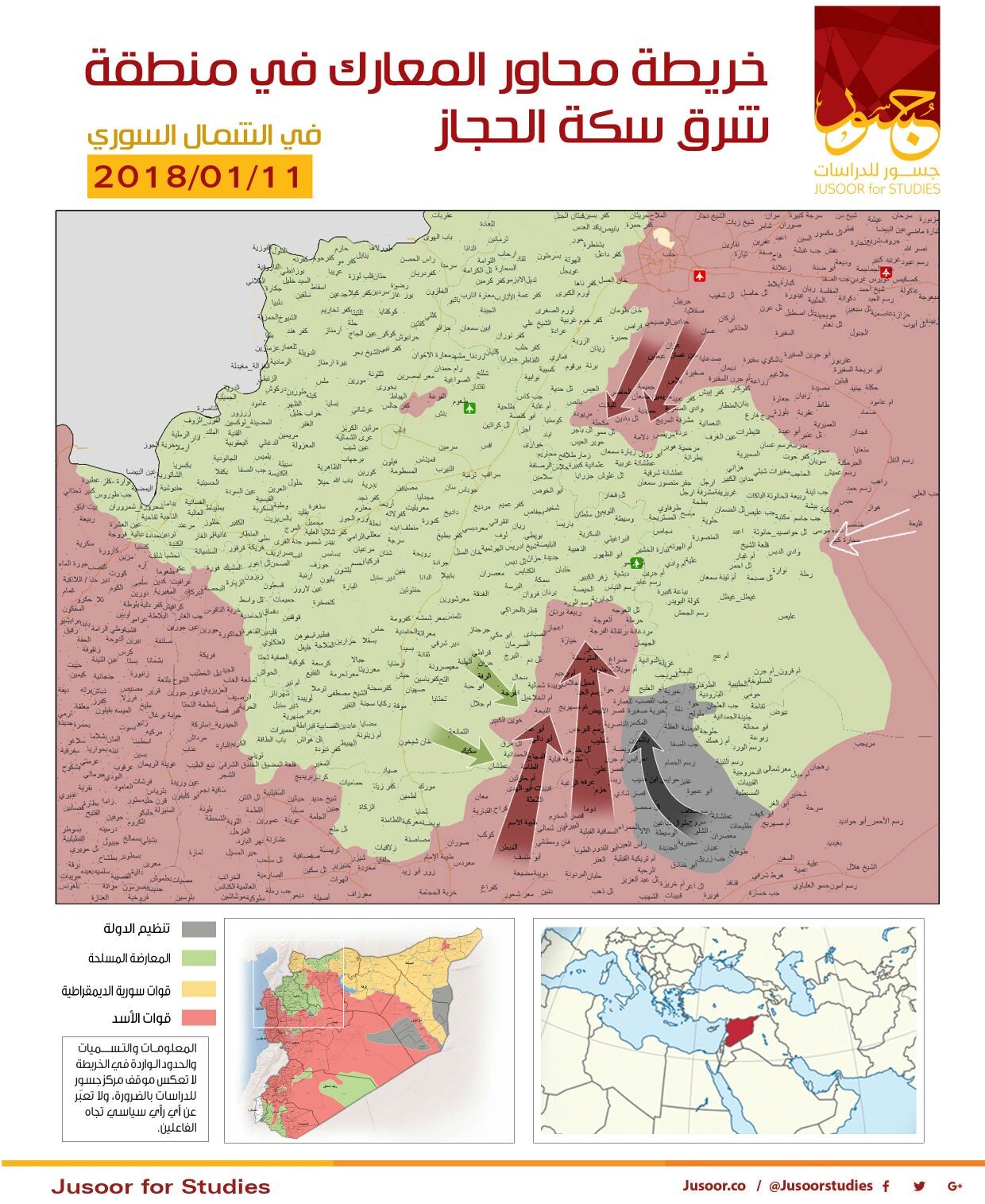 وتريد ميليشيا النظام السوري فرض حصار على منطقة شرق سكة الحجاز التي تمتد على أرياف حلب وإدلب وحماة، وذلك بالسيطرة على المنطقة الواصلة بين مطار أبو ظهور والحاضر؛ وبالفعل قامت ميليشيا النظام بمحاولة التقدم من محور الحاضر في 9 كانون الثاني/ يناير 2018، للسيطرة على عدد من القرى لكن دون جدوى.