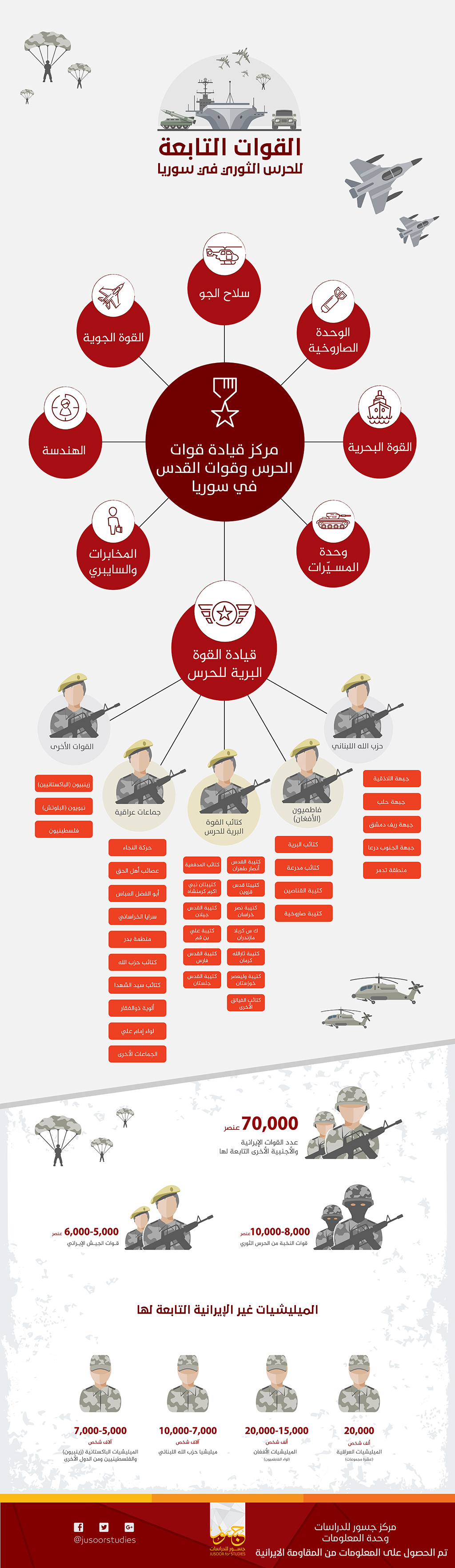 في توثيق هو الأول من نوعه، قامت  المقاومة الإيرانية بتحديد مواقع انتشار مقرات القوات الإيرانية في مختلف المحافظات السورية، وقام مركز جسور بتحويلها إلى أشكال بصرية لتصل لأكبر شريحة ممكنة.