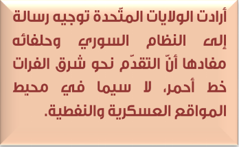 في الواقع، لم يكن النظام السوري حين خروجه من شرق الفرات يشعر بتهديد قد يواجهه إزاء سيطرة حزب الاتّحاد الديمقراطي على المنطقة، لكنّ بعد قيام الولايات المتّحدة بدعم الحزب وجناحه العسكري في إطار محاربة تنظيم داعش، بدأ النظام وحلفاؤه يشعرون بالارتباك من النتائج التي قد يسبّبها هذا الدعم على مكاسبه ومصالحه الاستراتيجية لذلك سارع للوصول إلى المواقع الحيوية لا سيما النفطية، إلّا أنّ رسائل التحذير غير المسبوقة من أمريكا عطّلت مؤقّتاً قدرته على المناورة والعودة دون أن تنهيها.