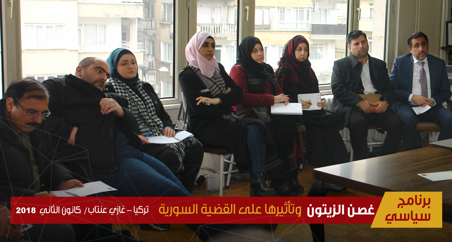 وتم خلال الجلسة نقاش أهداف العملية العسكرية في عفرين، والتحديات والمخاطر التي قد تواجهها، والتأثير المتوقع أن تحدثه على الثورة السورية ومكونات الشعب السوري، كما تطرقت الجلسة إلى طبيعة البيئة الجغرافية والسياسية لمنطقة عفرين شمال غرب حلب، والنتائج والحلول والمآل المتوقع للعملية.