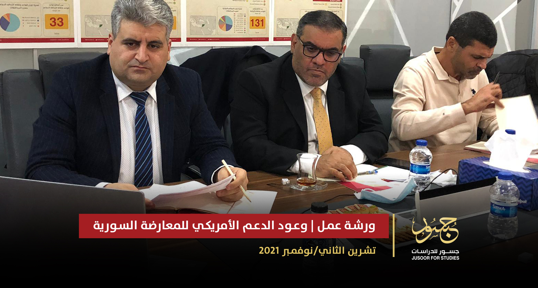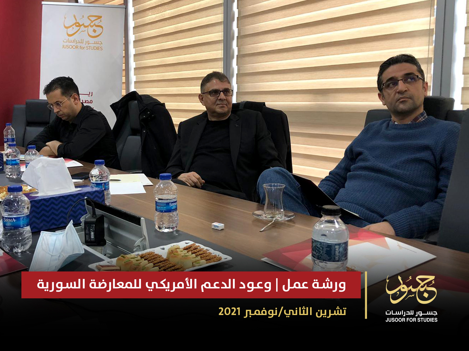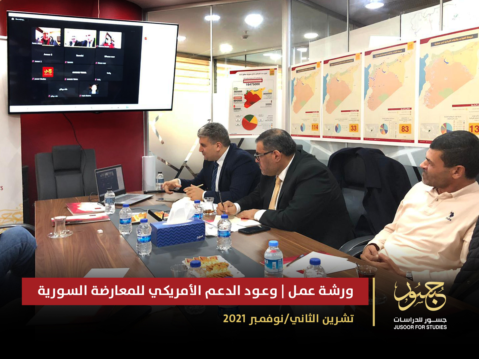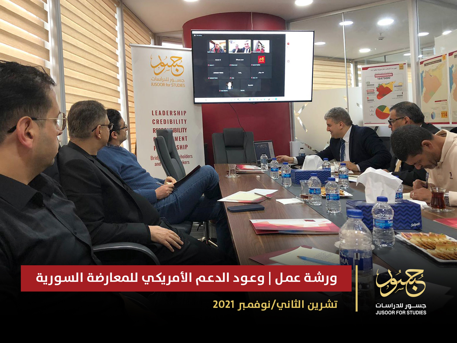 أقام مركز جسور للدراسات يوم 30 تشرين الثاني/نوفمبر 2021 ورشة عمل حول اللقاءات الأخيرة للمسؤولين في الإدارة الأمريكية مع المعارضة السورية، وما تضمنته هذه اللقاءات بالإضافة لزيارات المعارضة السابقة فيما يتعلق بالموقف الأمريكي من القضية السورية ومختلف الأطراف المحلية والخارجية فيها.