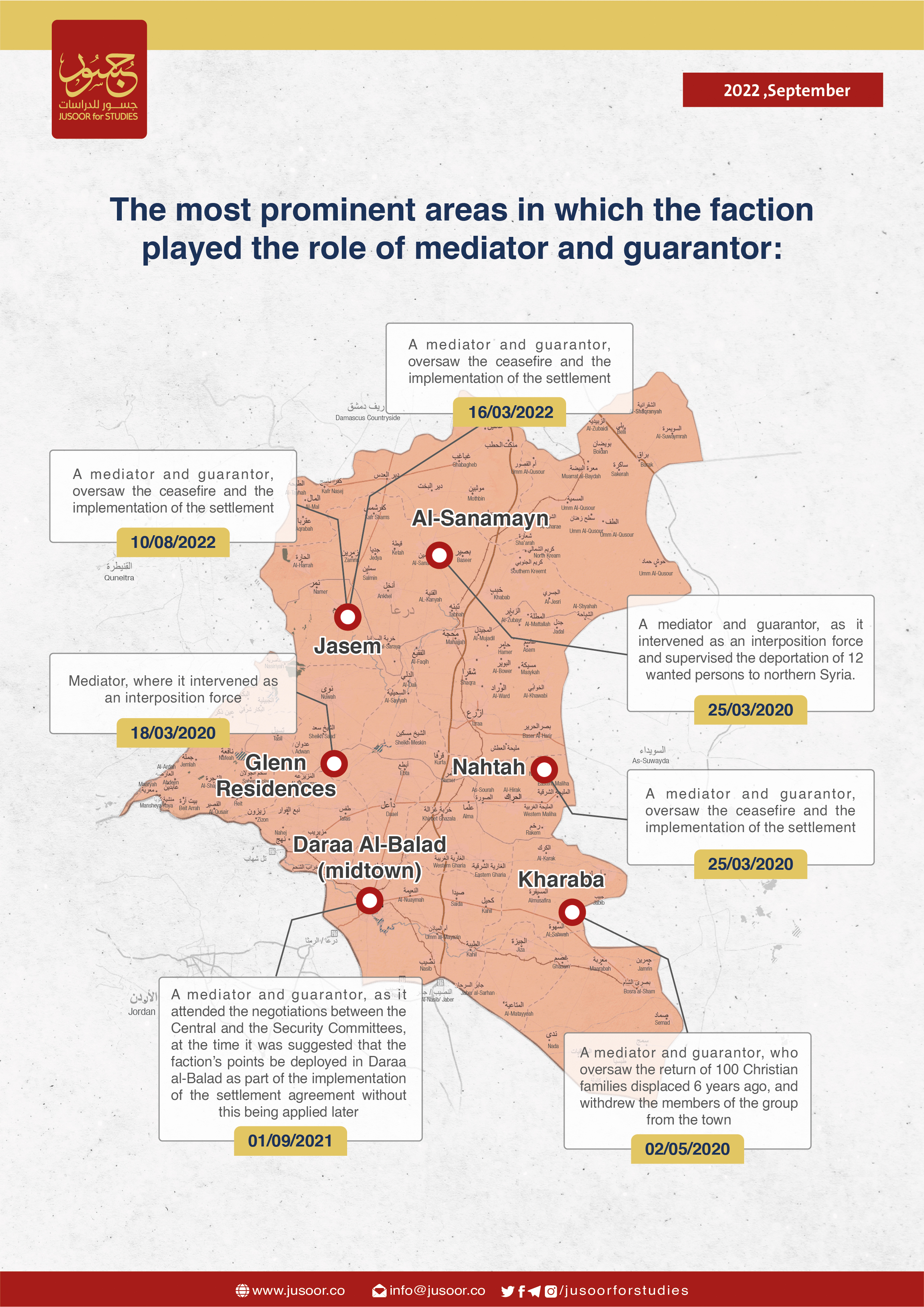 It also attempts to extrapolate the fate and future of this faction in the light of the challenges and opportunities it faces, as the most prominent group among those signed reconciliation agreements in the Governorate of Daraa.
