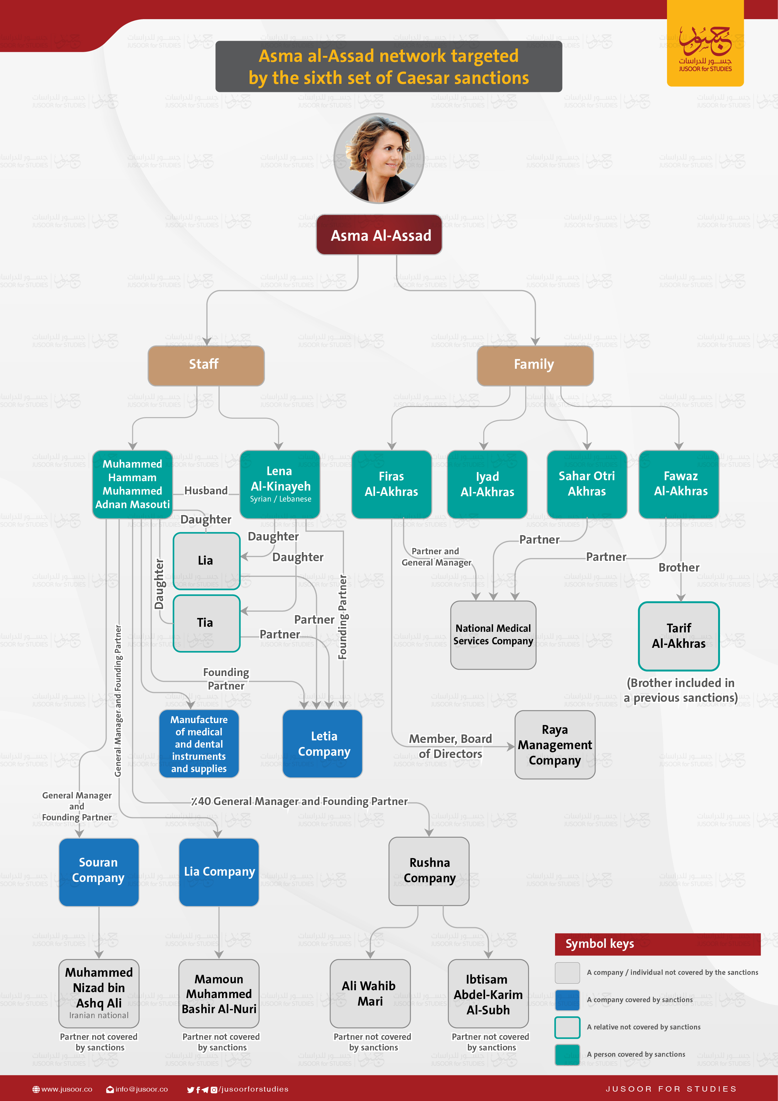 One year passed after the Caesar Syria Civilian Protection Act was signed into law, and it went into force six months ago before a new set of sanctions has been approved that included the Central Bank of Syria for the first time, in addition to targeting the depth of Asma al-Assad's economic network, including her immediate relatives of the Al-Akhras family. The sanctions included Asma's father, mother, and two brothers, all of whom are Syrian citizens with British citizenship. The designated individuals are believed to be doing commercial and political activities for Asma al-Assad, including public relations campaigns and doing business on her behalf.