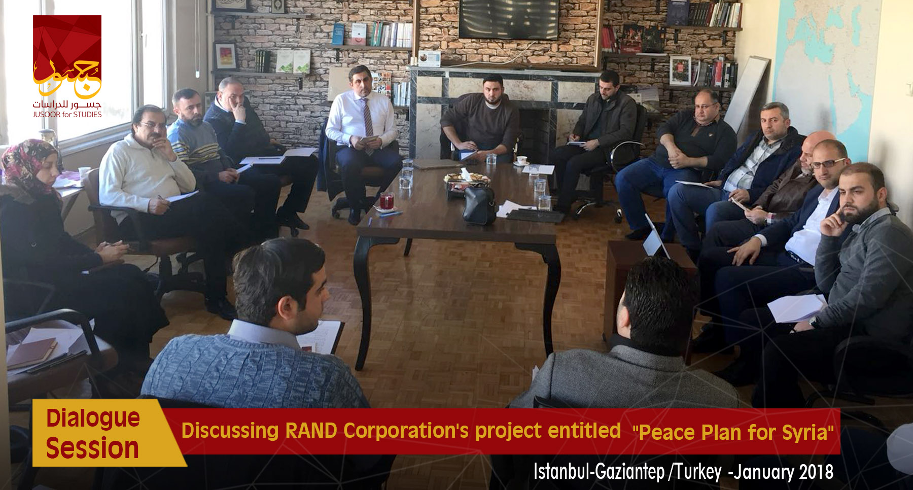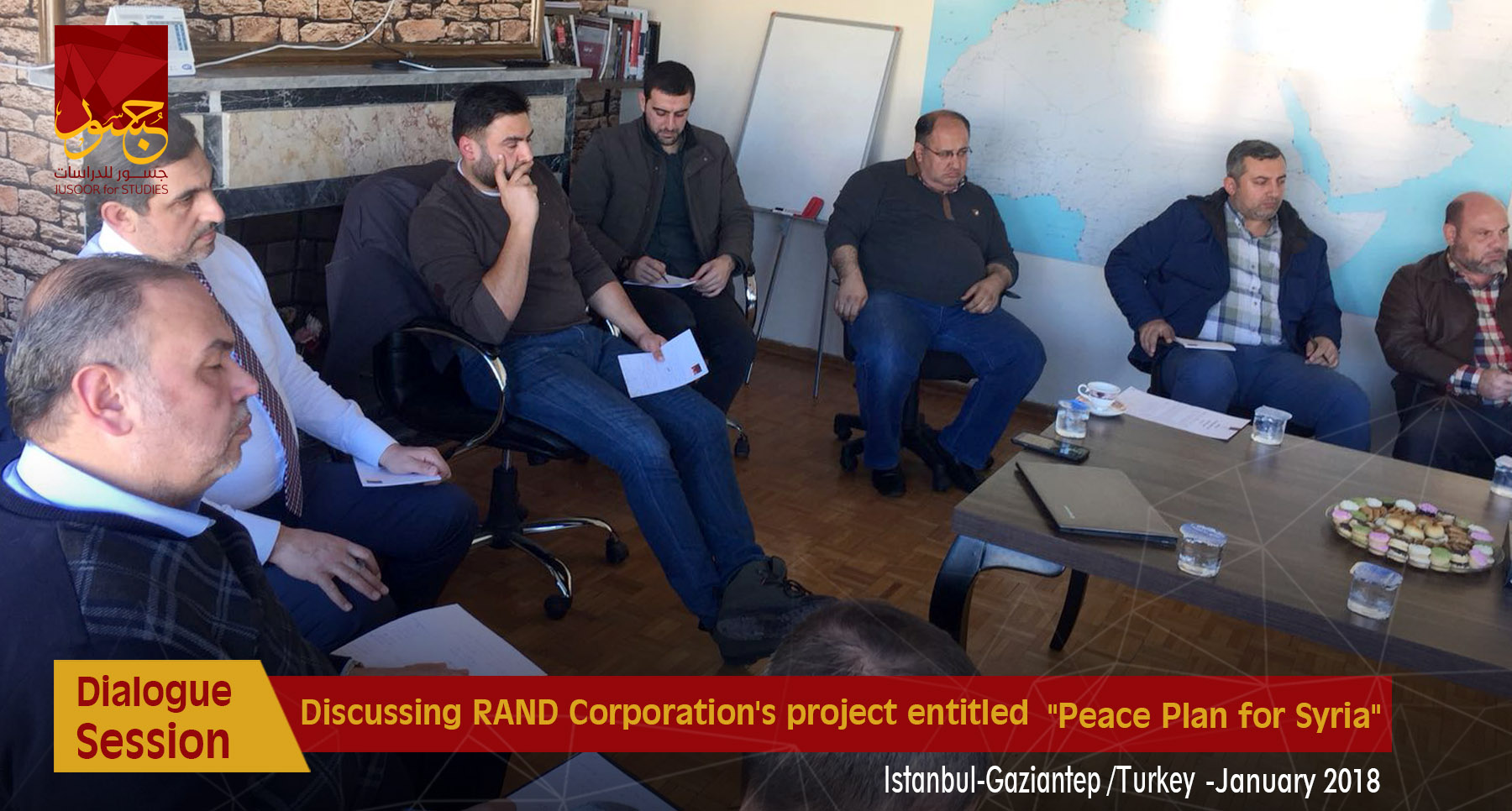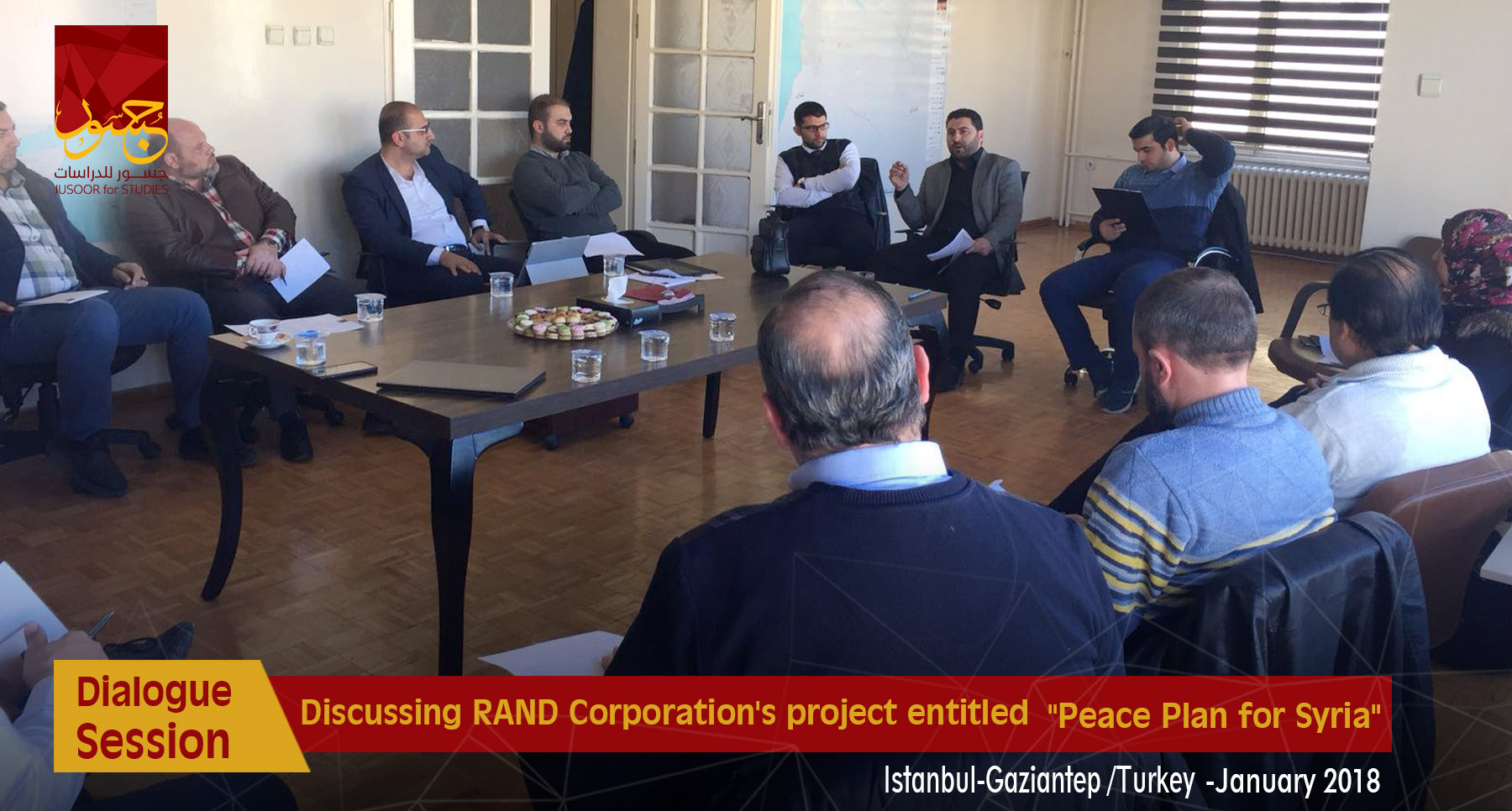 Jusoor for Studies Center held two dialogue sessions about RAND Corporation's project entitled "Peace Plan for Syria" in December the 8th in Istanbul and Gaziantep offices, as a select number of Syrian politicians, actors, and researchers partook in these sessions.