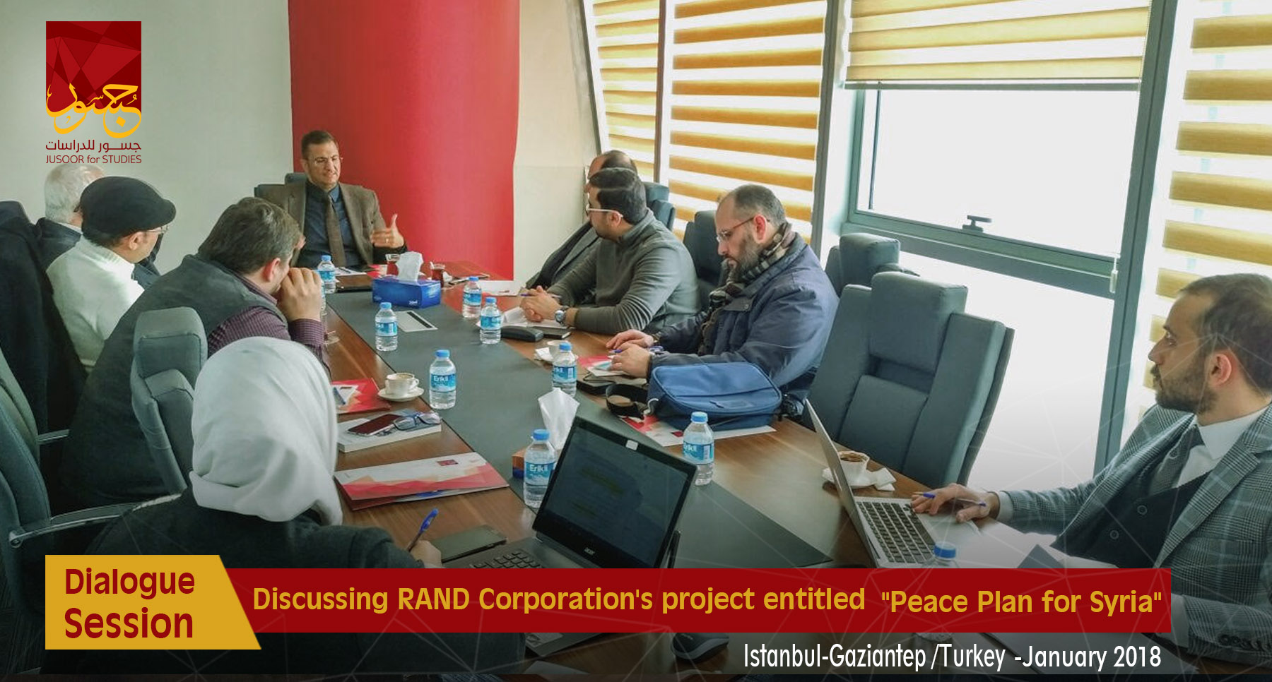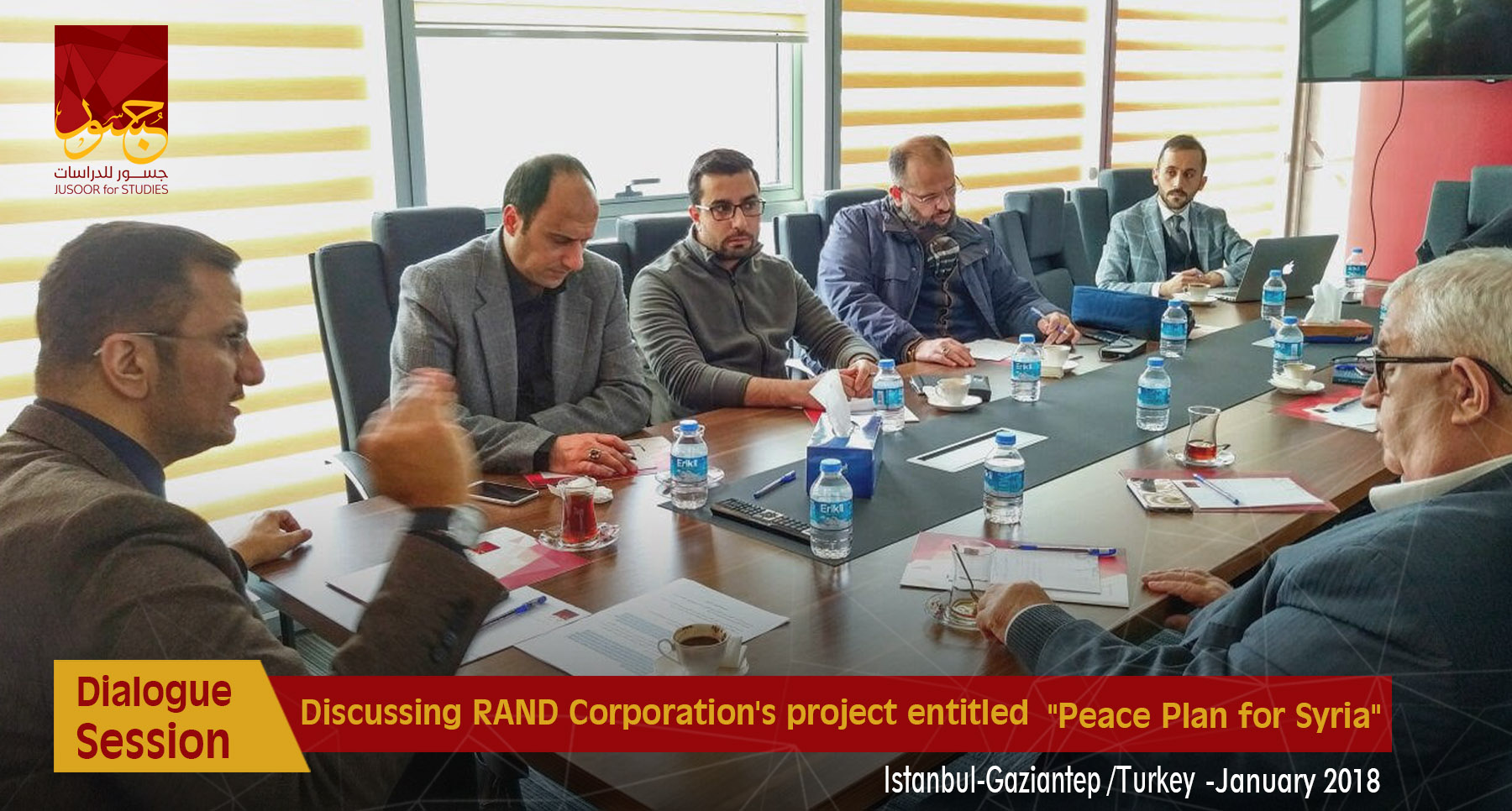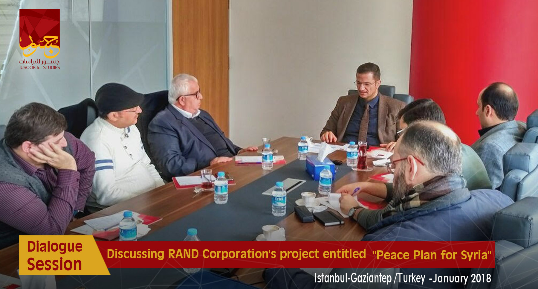 Jusoor for Studies Center held two dialogue sessions about RAND Corporation's project entitled "Peace Plan for Syria" in December the 8th in Istanbul and Gaziantep offices, as a select number of Syrian politicians, actors, and researchers partook in these sessions.