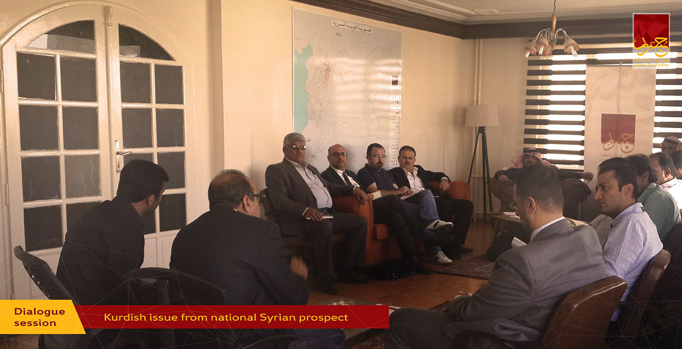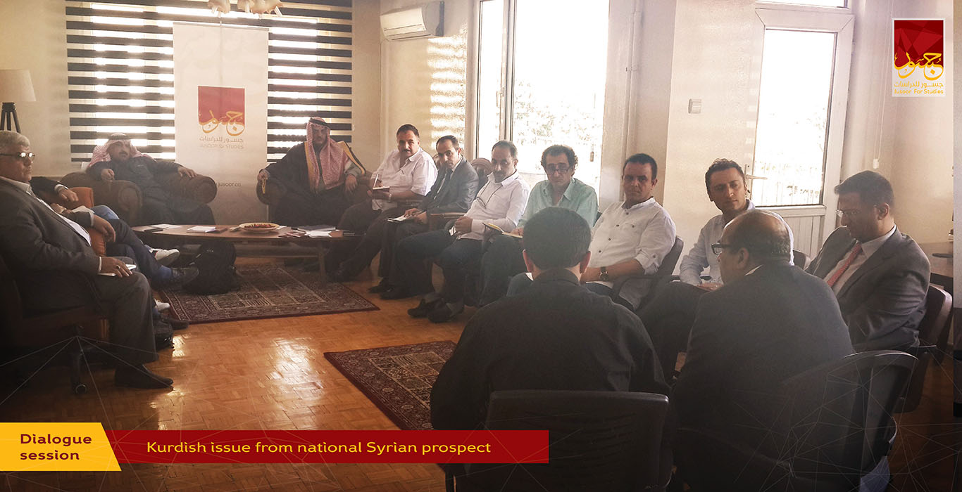 Jusoor center organized first dialogue sessions (part of Jusoor for dialogue initiative) holding the title "Kurdish Issue from national Syrian prospect", on 6/10/2016. the session hosted Mr. Zardasht Mohammad, member of national Kurdish council in Syria and the political office of democratic unity party, many political, military and CSOs figures participated in the session.