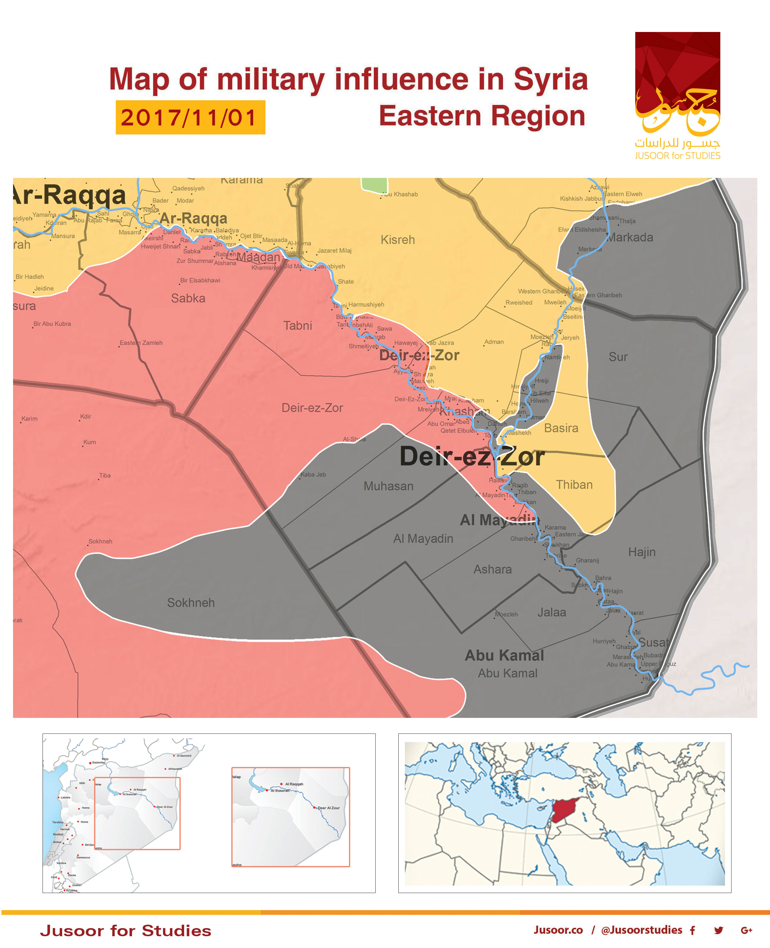 SDF continued its progress towards Deir ez-Zor eastern countryside, controlling Al Omar strategic oil field on the 23/10/2017 and headed towards Al Sh-heil town and controlled it later which caused a siege on ISIS combatants is many towns and villages.