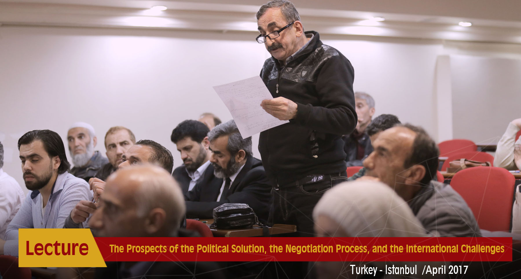 Jusoor for Studies organized a seminar under the name "the Prospects of the Political Solution, the Negotiation Process, and the International Challenges", as Dr. Nasr Al Hariri, member of the political body in the Syrian Coalition for the revolutionary forces also head of the opposition delegation in Geneva negotiations, lectured in the seminar that took place in Istanbul city on 15th April 2017.