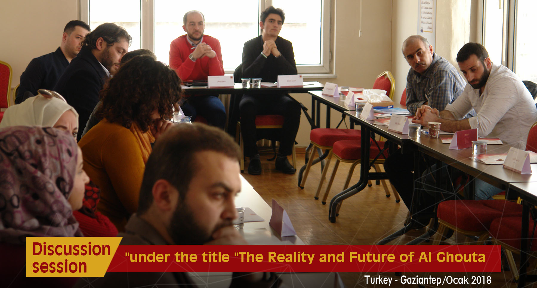 On March 5, 2018, Jusoor For Studies Center conducted a discussion session under the title "The Reality and Future of Al Ghouta" in Gaziantep city. Many influential characters have partaken in this session such as Mohammed Biraqdar, the Public Relations Officer in Jaysh Al-Islam, Bassam Al Quwatli, Head of Working Group for Syria, representatives from Damascus Provincial Council, and a number of activists and journalists.