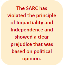 While this principle was constantly violated because many individuals assumed high positions in the SARC as per security recommendations and they have dismissed and removed many volunteers and staff because of their loyalty to the Syrian regime. Further, some of those individuals were reporting their colleagues to the security forces in addition to giving information about the rebel-controlled areas after entering them with the UN.