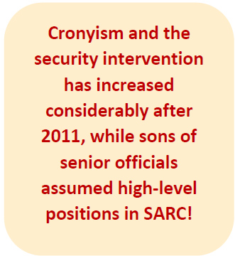 Employees of the Administrative staff department in the SARC receive high salaries, where children of senior officials work in this department. Further, any senior official can employ his/her children of relatives by contacting the head of the SARC’s branch without passing through the rules of procedure’s stages.