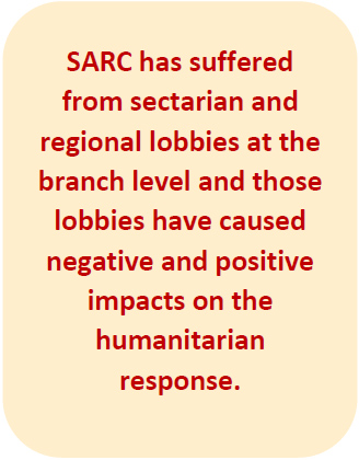 The response of the SARC’s teams have varied nationwide according to the targeted area and the temporal phases of the conflict, also the response was limited and corruption has increased dramatically.