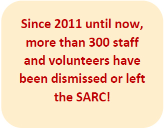Furthermore, many staff and managers were removed or dismissed after the presidency of Hboubati such as Rami Sattouf, treasurer of the SARC, Marwan Abdallah, manager of the organization, and Dr. Hazem Baqleh. It is worth mentioning that some staff of the SARC has left due to indirect pressure or the deliberate exclusion practices.