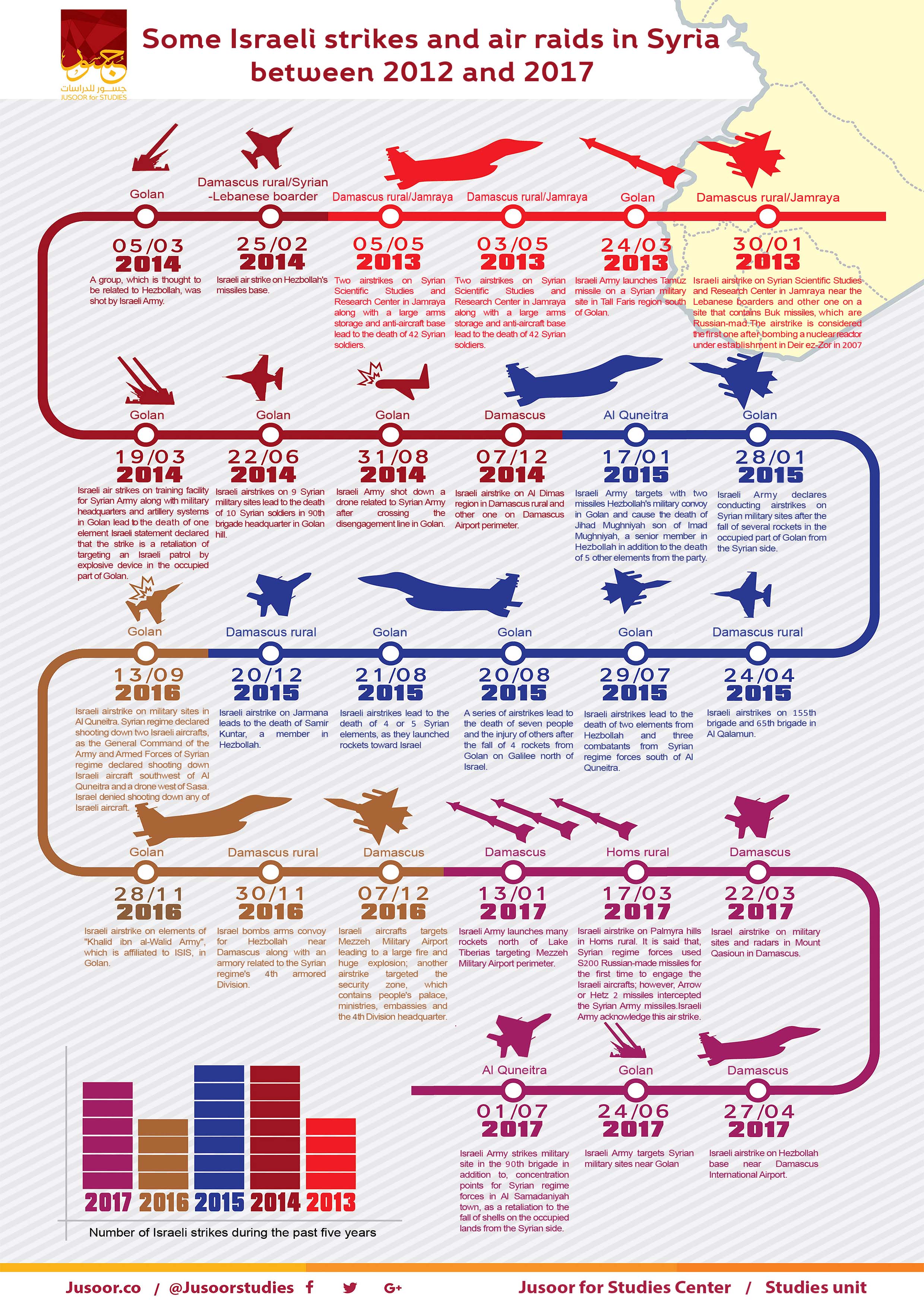 On 19/7/2017, Israeli prime minister declared that: “Israel has conducted dozens of airstrikes in Syria during the past five years”.