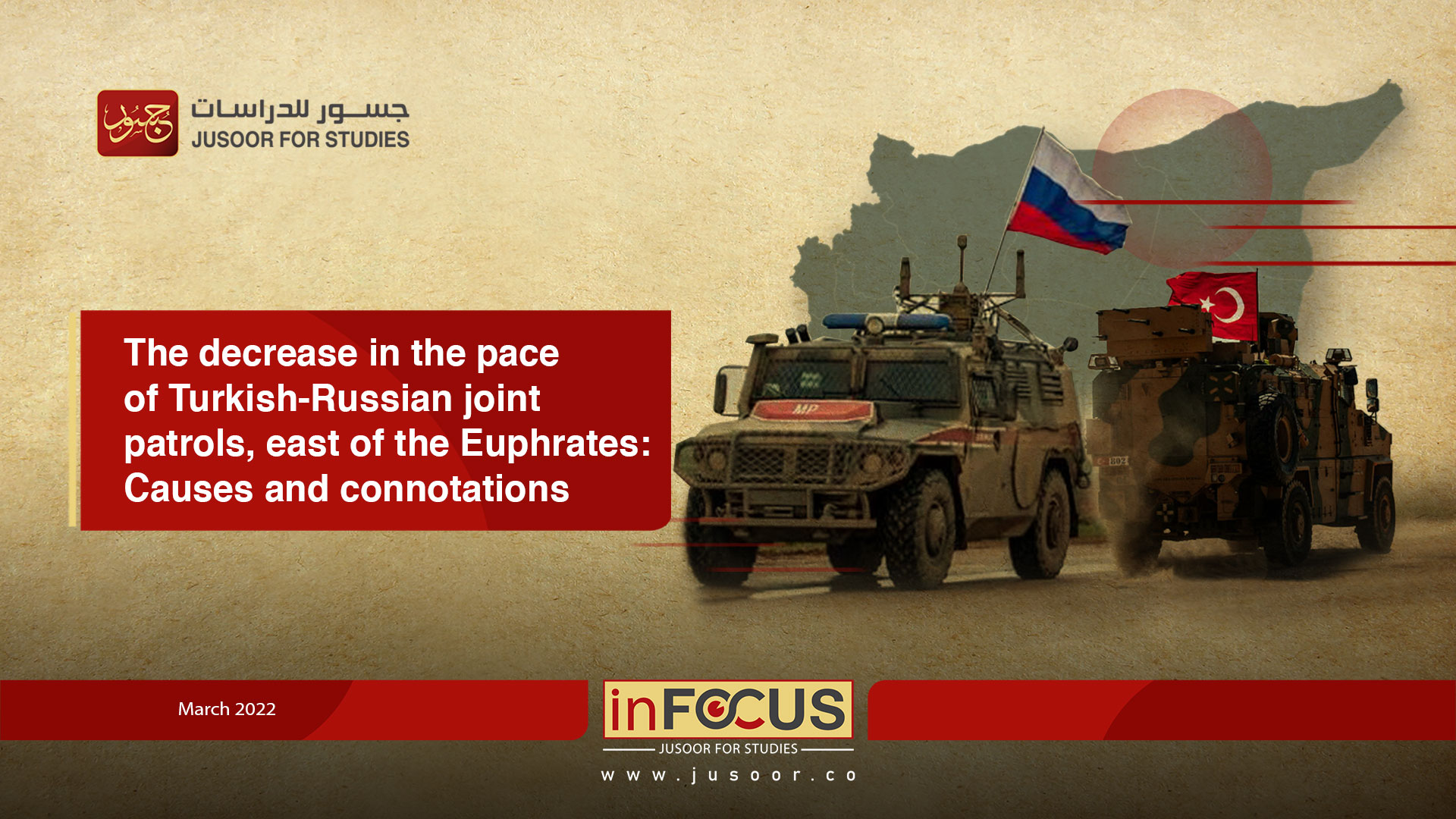 Since the beginning of 2022, the numbers of conducting joint military patrols between Turkey and Russia in the areas east of the Euphrates have witnessed a marked decrease. During the first quarter of the current year, the two parties conducted only 10 joint patrols, at a rate of approximately 3 patrols a month, whereas in 2021, they conducted approximately 66 joint patrols, at an average of more than 5 patrols per month.
