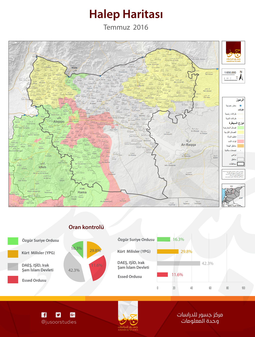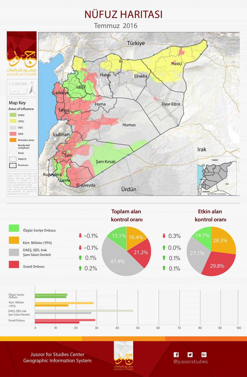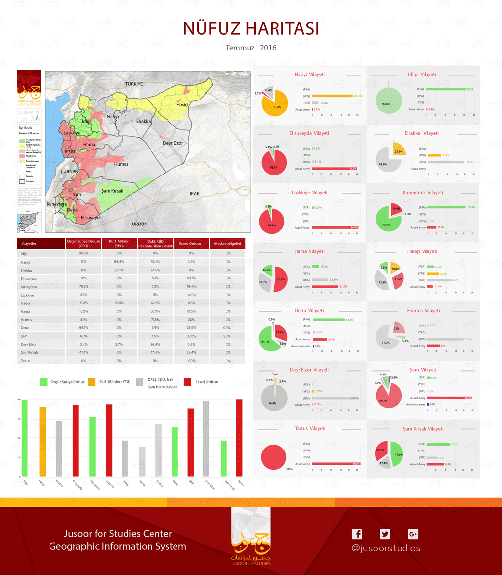 Jusoor Araştırma Merkezi Temmuz 2016 ayının askeri nüfuz dağlım haritasını yayınladı.